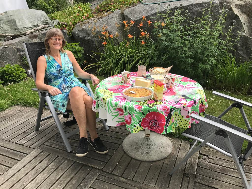 Idag styrde jag kosan mot Göteborg, närmare bestämt Billdal där min goda vän Mia bor. Jag ska vara här ett par dagar. Vi började med fika vid hennes färgglada duk. Det har jag längtat efter. Såååå underbart att bara få sitta och fika, prata och umgås. Det blev en härlig stund med total avkoppling.