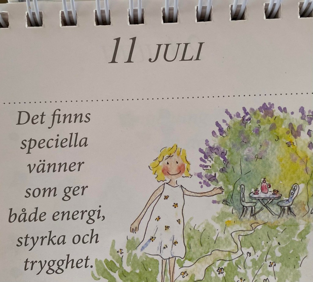Jag avslutar med att lägga upp en bild från Mia och Bengts almanacka från Pedagogförlaget. Budskapet stämmer väldigt bra, speciellt idag: Det finns speciella vänner som ger både energi, styrka och trygghet. Mia är en god gammal vän som jag känner mig trygg med. Vi har så roligt och kan prata om allt.