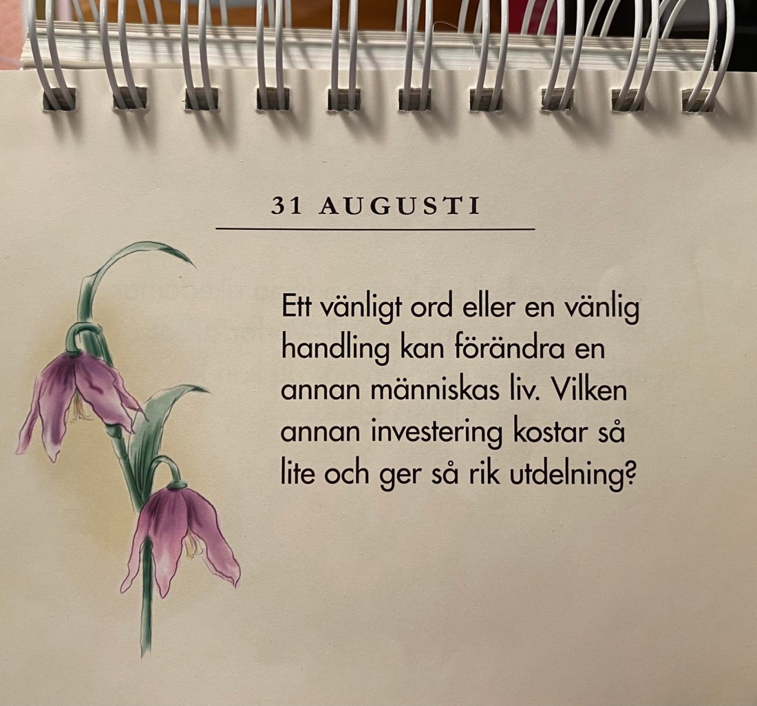 Dagens budskap i min kalender Tankar om Livet lyder som följer:
