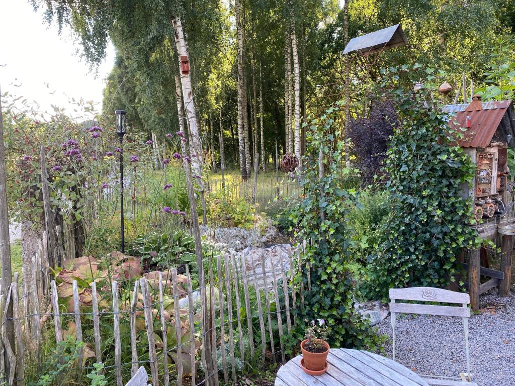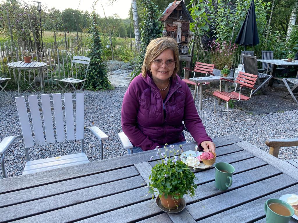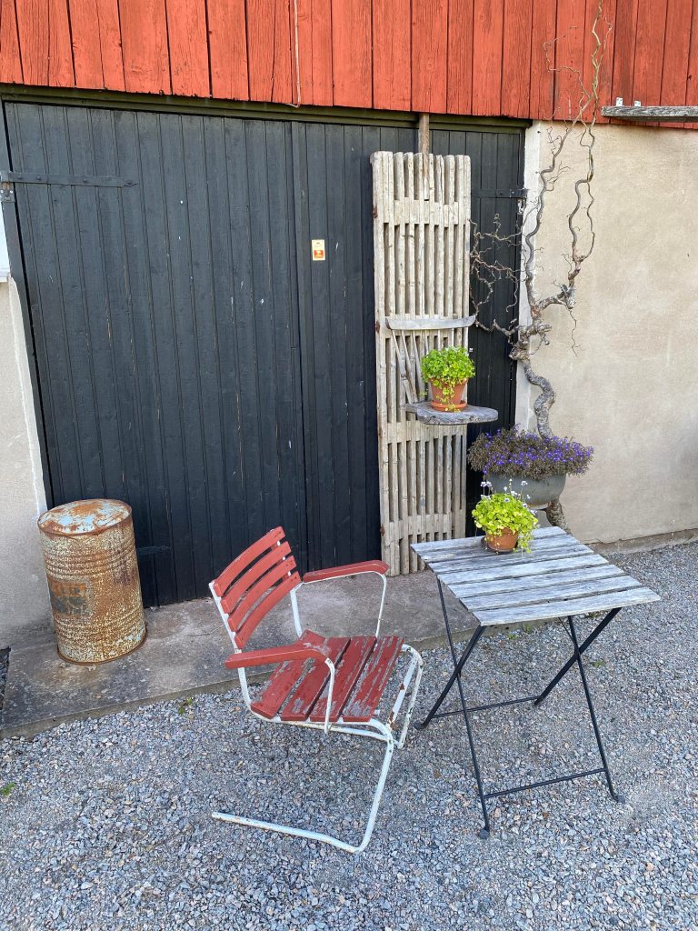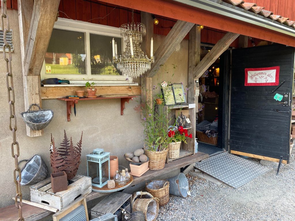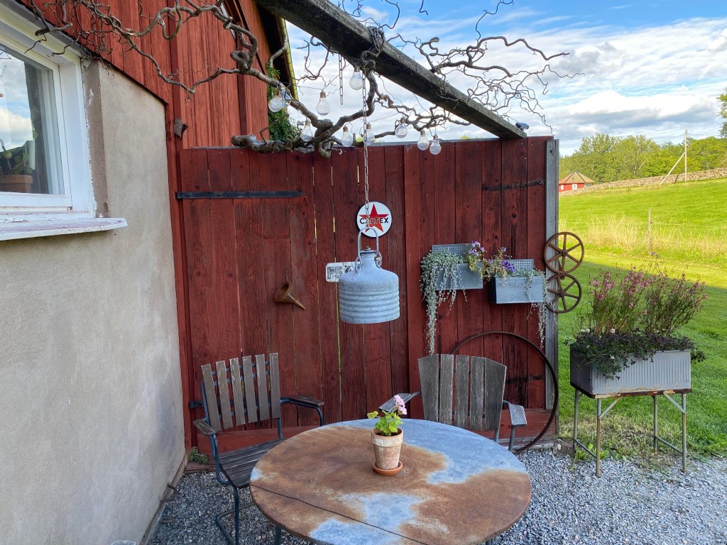 Jag hade fått tips av en kompis att också besöka Hemma på Källebacka som ligger strax söder om Ulricehamn. Där har de inrett en gammal lada där de säljer inredning och har café. Man kan fika både ute och inne men vi slog oss ner ute.