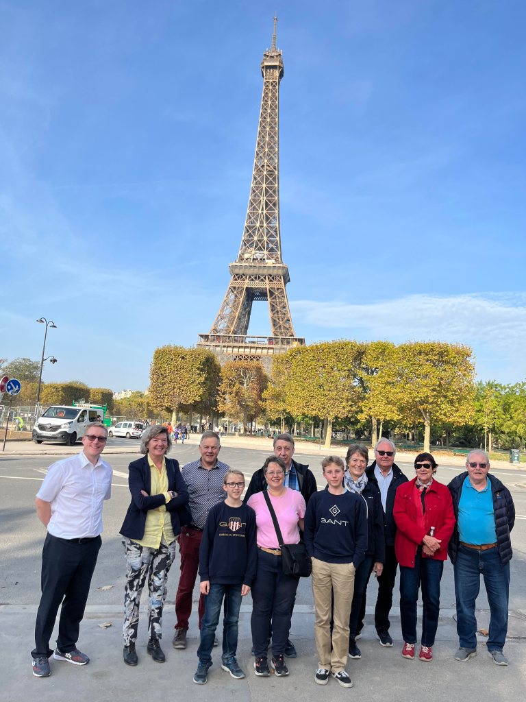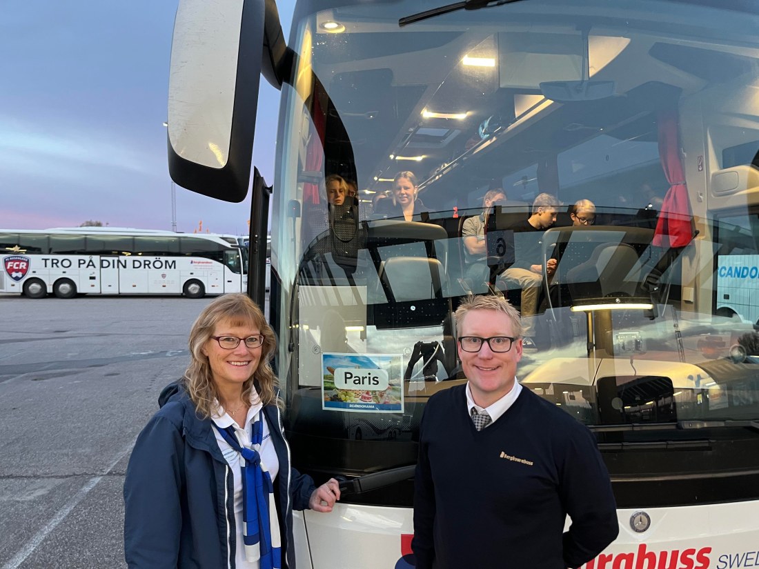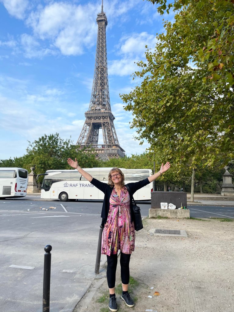 Färden fortsatte mot Eiffeltornet. Vi hade turen att hitta en parkeringsplats på Marsfälten så vi kunde stanna en stund och ta kort på Eiffeltornet. Vi dukade också upp vårt busscafé en stund. Solen sken, vi stod där och tittade upp mot Eiffeltornet och njöt av en kopp kaffe. Det känns som att livet inte kan vara bättre. Jag njuter så mycket jag bara kan.