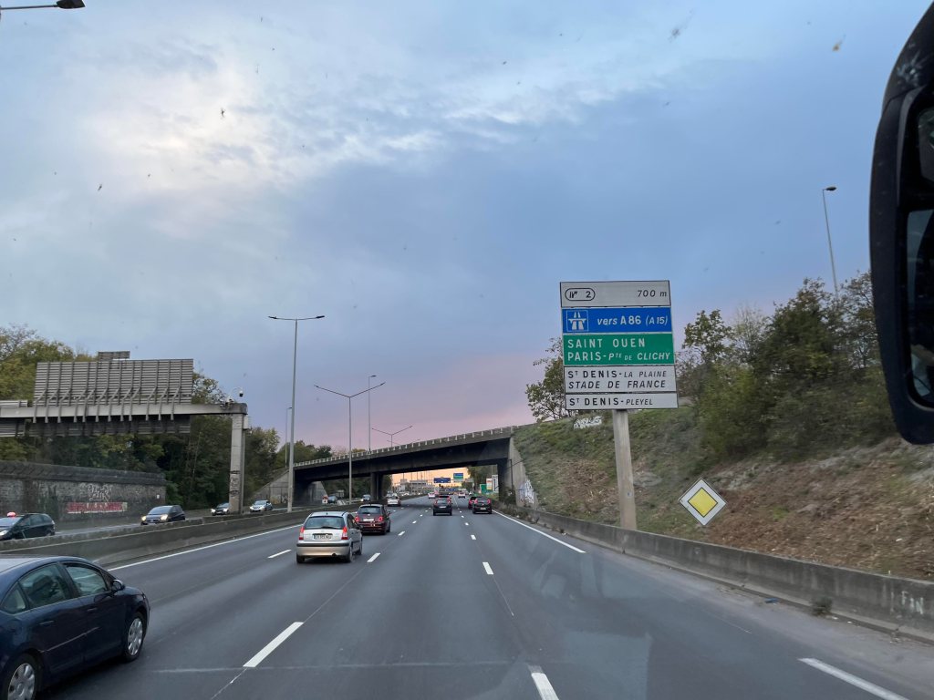 Vi nådde Place Charles de Gaulle Étoile där Triumfbågen står. Vi körde vidare längs den historiska axeln som går från Louvren ända ut till Paris ultramoderna område La Défense. Där finns många höga skyskrapor och väldigt modern bebyggelse. Det är en upplevelse att komma dit. La Défense skiljer sig verkligen från mysiga Paris med den gamla bebyggelsen med franska balkonger och plataner längs vägarna.