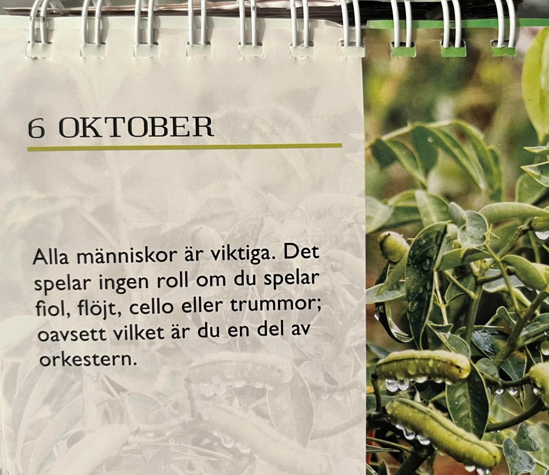 Alla människor är viktiga. Det spelar ingen roll om du spelar fiol, flöjt, cello eller trummor; oavsett vilket är du en del av orkestern.