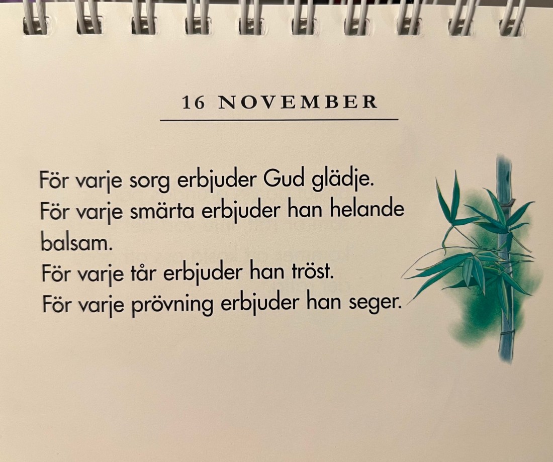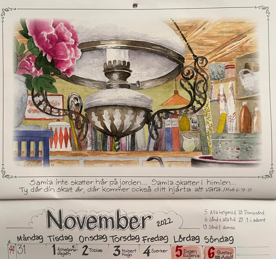 Novembers månadsbild i min almanacka Ro för själen av Kerstin Svensson ser ni här. Texten lyder: