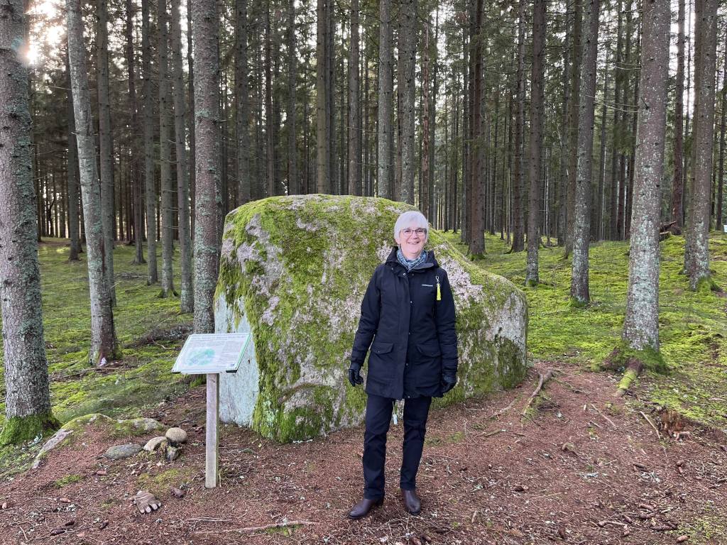 Vi vandrade vidare genom skogen där det bl a finns ett jätteblock. Jag tycker denna skog är vacker, lite lik en trollskog.