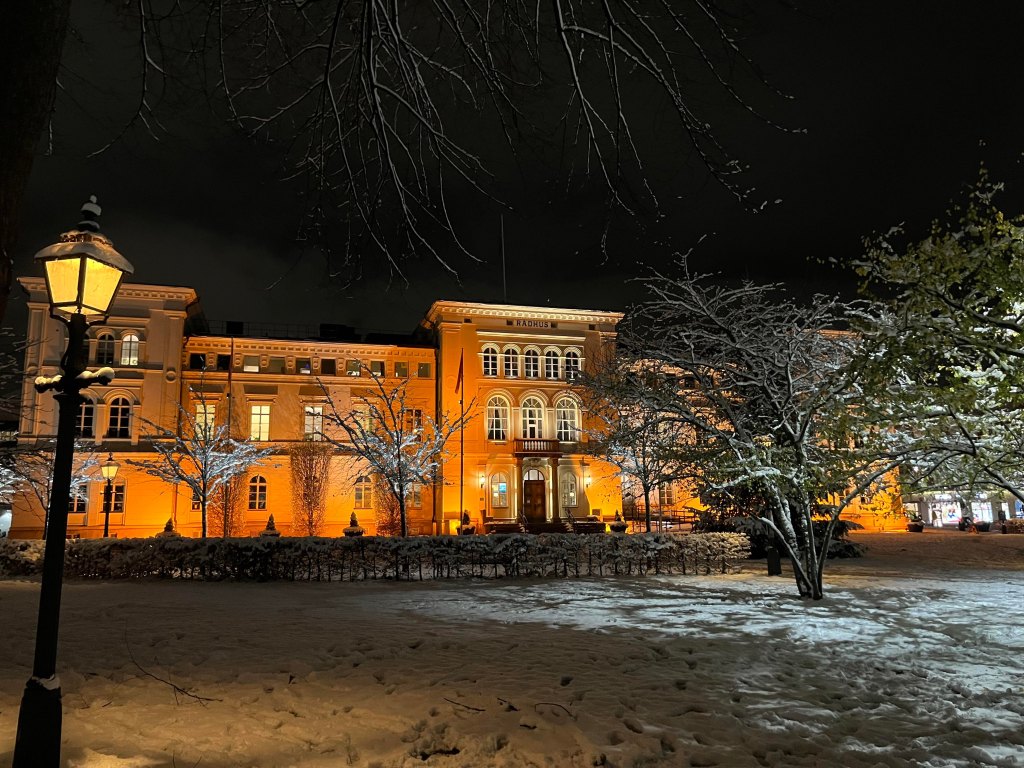 Ikväll åkte jag in till stan en sväng och njöt av vinterlandskapet även där. Nedan ser vi Rådhuset i Jönköping
