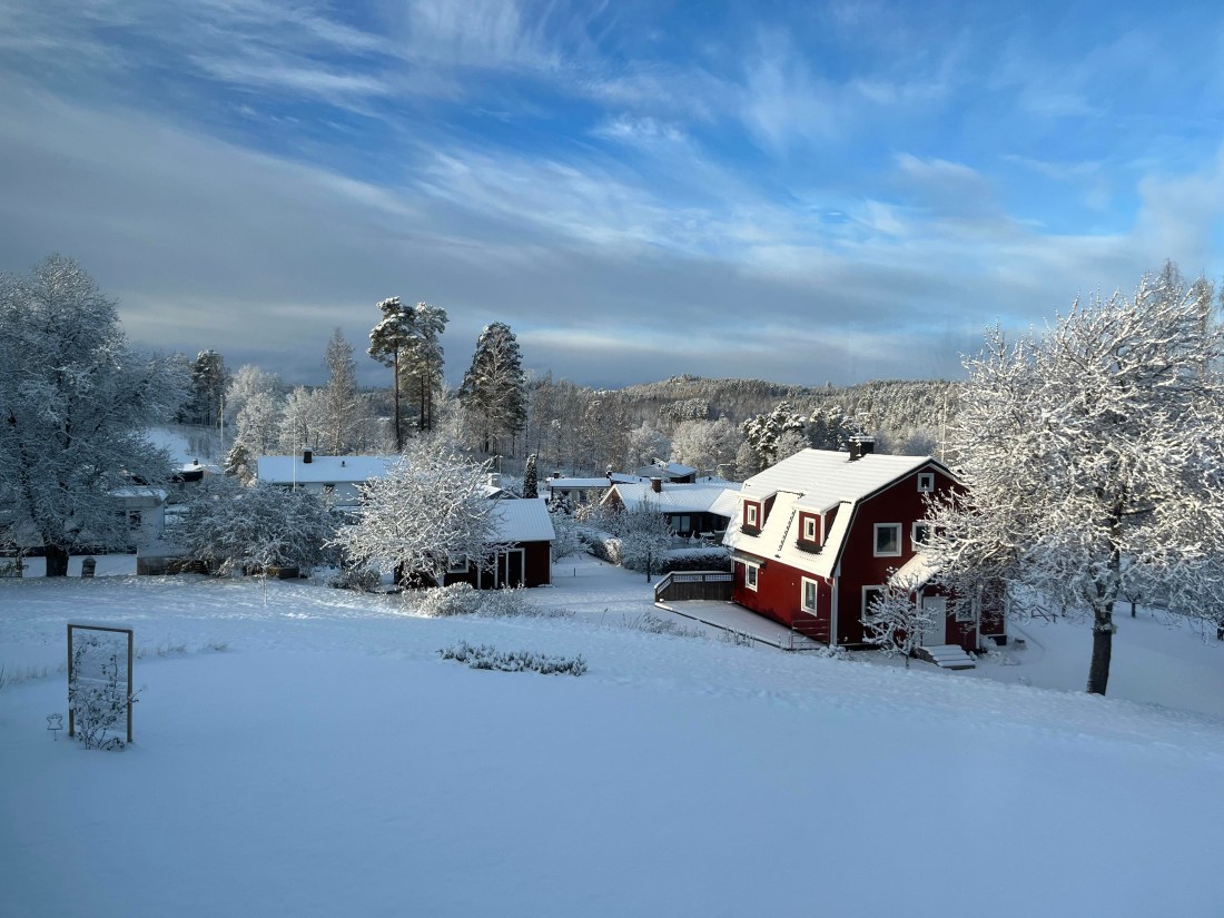Det har snöat i ett dygn och nu är det verkligen vackert ute. Jag njuter när jag tittar ut. Jag har arbetat hela dagen så jag har inte kunnat vara ute och njuta av detta vackra. Jag har fått nöja mig med att titta ut genom fönstret då och då.
