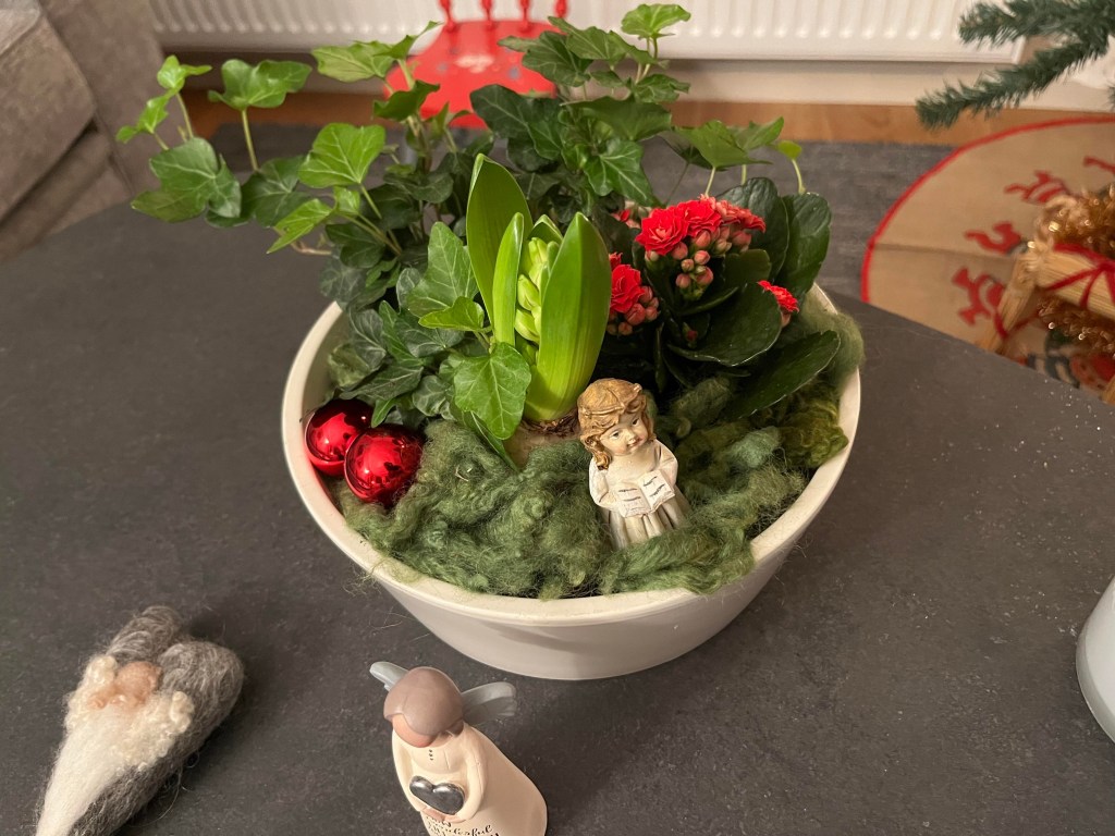 Idag har jag köpt julrosor och andra växter. Det är roligt att pynta inför 1:a advent. Jag köper alltid tre julrosor inför 1:a advent, två till fönstren och en till matbordet. Då blir jag nöjd och får det som jag vill ha det för att skapa julstämning här hemma.