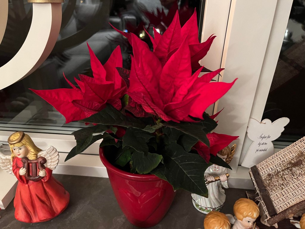 För ett par veckor sen hade jag svårt att förstå att advent närmade sig. Det har varit rätt så varmt ute och jag har kunnat plocka in ringblommor och luktärter länge. Nu börjar jag ändå känna den där mysiga stämningen då julen närmar sig. Det är mörkt ute och man behöver verkligen göra allt för att pigga upp sig. Jag gillar julrosornas röda klara färg och nu känner jag julstämningen komma.