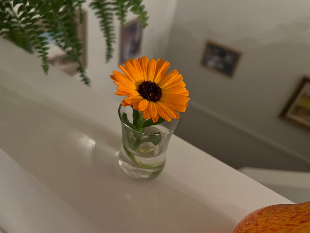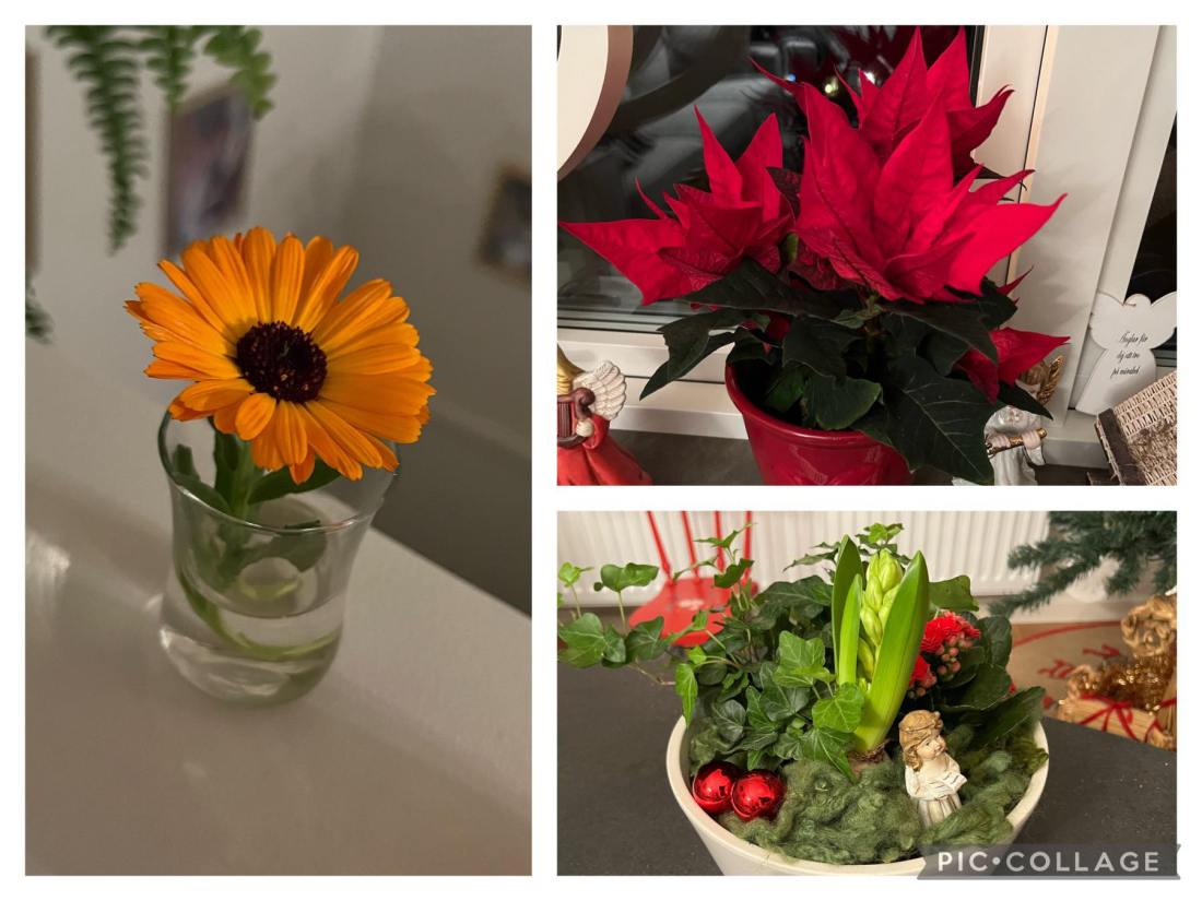 I lördags tog jag upp alla ringblommor som blommat så fint hela sommaren. Jag hade mycket trädgårdsavfall att köra till Återvinningen. Jag hade sparat en hel del sen tidigare i höstas men nu är allt ivägkört. Skönt! Nu kan vintern komma. Trots att det snöade för någon vecka sen fanns det ett par blommande ringblommor kvar som jag tog in. Nu är det alltså en mix av sommarblomman ringblomma och julblommor i mitt hem. Trevligt!
