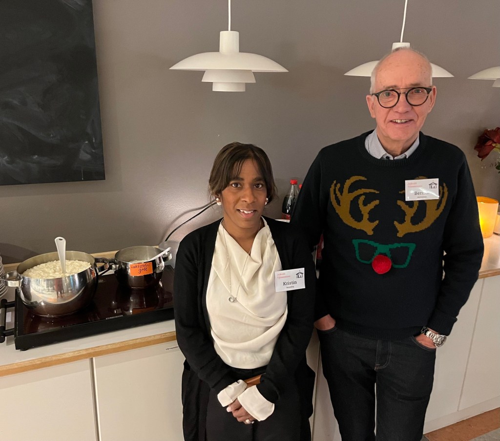 När gästerna började droppa in runt 17-tiden bjöd jag på glögg med tillbehör. Det blev en härlig stämning direkt. Alla kände inte alla utan det var en salig blandning av folk men de ”connectade” eller knöt kontakt (om vi ska tala svenska) direkt.
