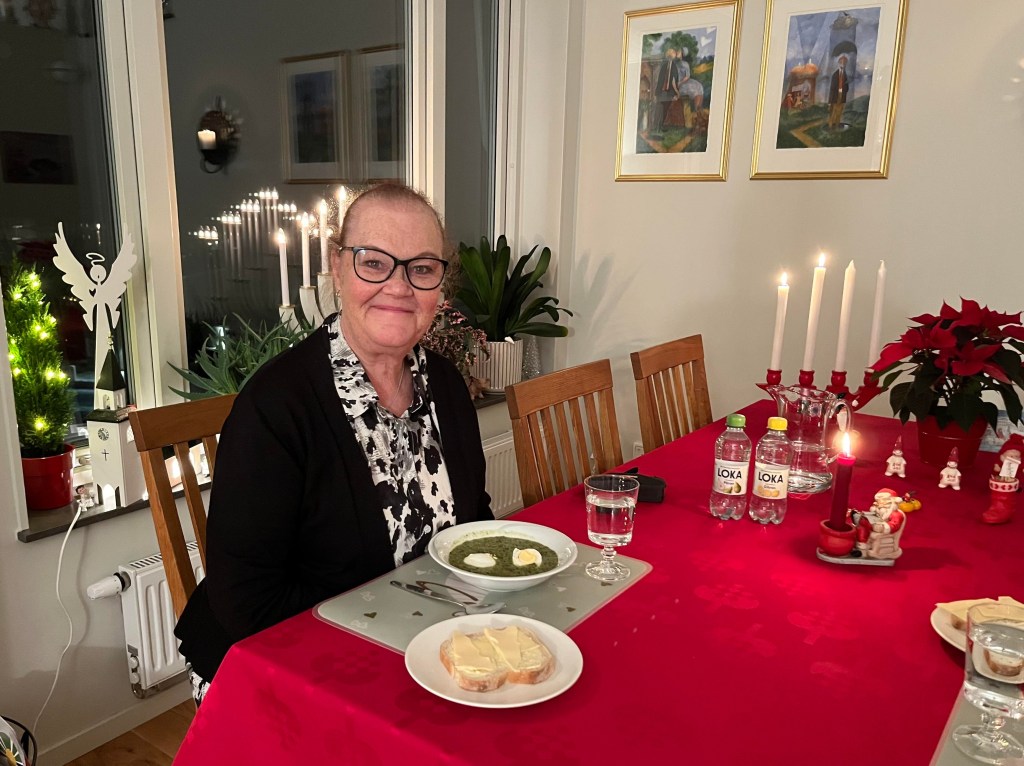 Min goda vän Yvonne och jag brukar träffas i adventstid och skriva julkort. Var och en skriver sina men vi skapar lite mysig julstämning genom att äta, fika och spela julmusik. Detta är en jättefin tradition. I söndags kväll var jag hos Yvonne och ikväll har hon varit hos mig. Jag bjöd på grönkålssoppa med ägg samt mackor, kex och ost. Senare blev det nybakade kakor.