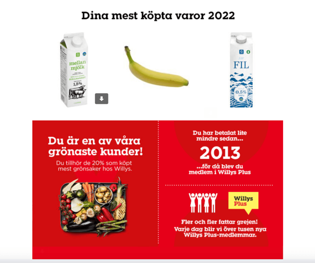 Jag fick mail från Willys idag. Jag är tydligen en av deras grönaste kunder. Jag tillhör de 20% som köpt mest grönsaker hos Willys. Eftersom jag har ett hushåll med bara en person blir det inte så stora summor men jag förmodar att det är uträknat procentuellt av den totala summan jag handlar för.