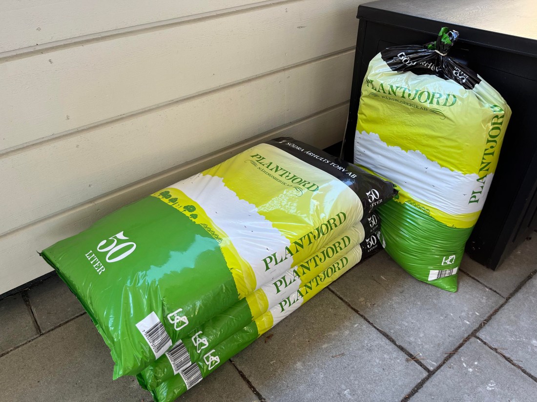 Igår lade jag frön från malabarspenat i vatten och idag skulle jag lägga dem i jorden. Då behövdes planteringsjord. Jag passade på att köpa 200 liter så jag har lite hemma när jag ska göra de första vårplanteringarna. Oh, vad jag ser fram emot detta.