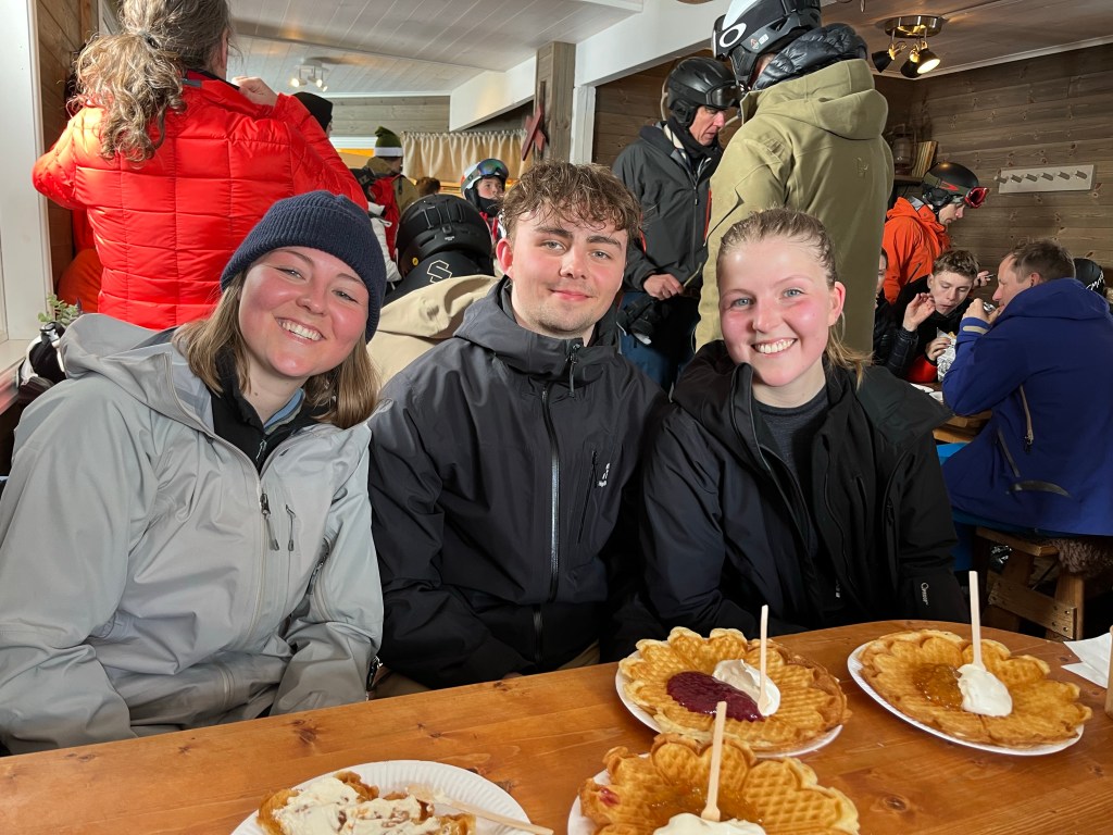 Vi gick in i toppstugan och beställde våfflor med hjortronsylt och grädde.