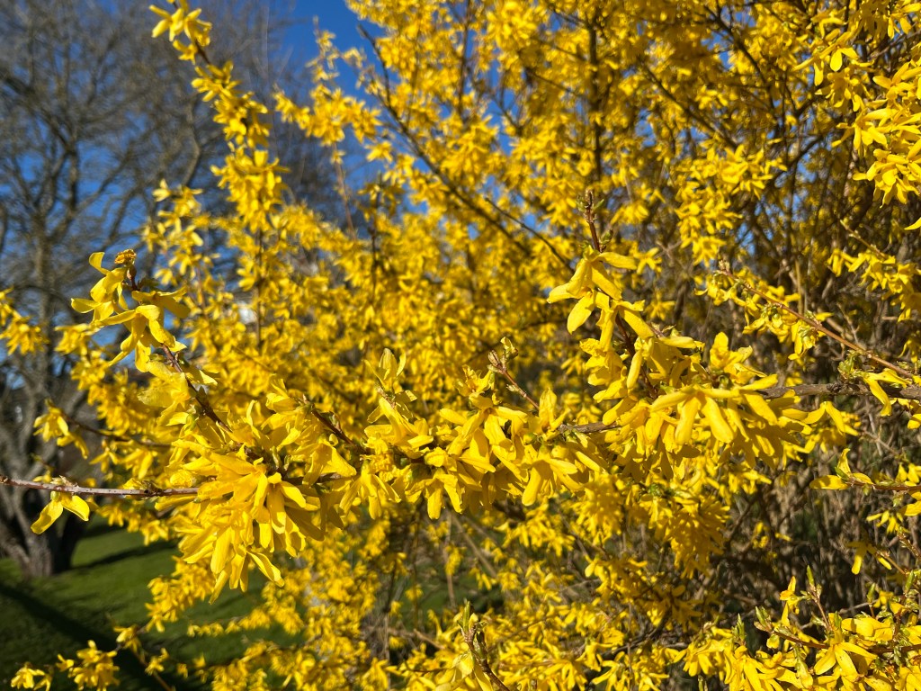 Vi hade ett par forsythiabuskar i mitt barndomshems trädgård. Jag tyckte de var fina men jag lärde mig inte vad de hette. Det var först när jag var 24 år och bodde i Frankrike ett år som jag började fundera på vad busken hade för namn. På den tiden skrev man brev och när jag skulle skriva brev hem till Sverige och berätta att Forsythian blommade var jag tvungen att kolla upp namnet. Sen dess har jag haft den kunskapen med mig.
