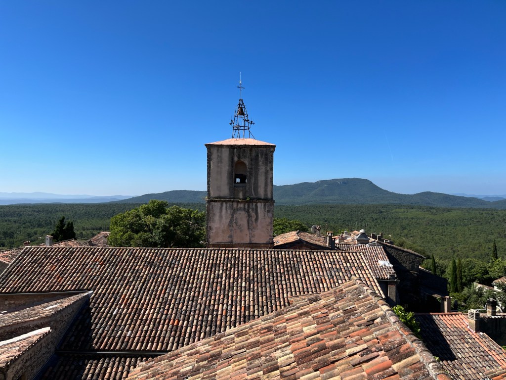 Vi drog oss uppåt mot kyrkan och fick se vacker utsikt söderut. På andra sidan bergen ligger Rivieran och den ska vi åka till någon dag i veckan som kommer.
