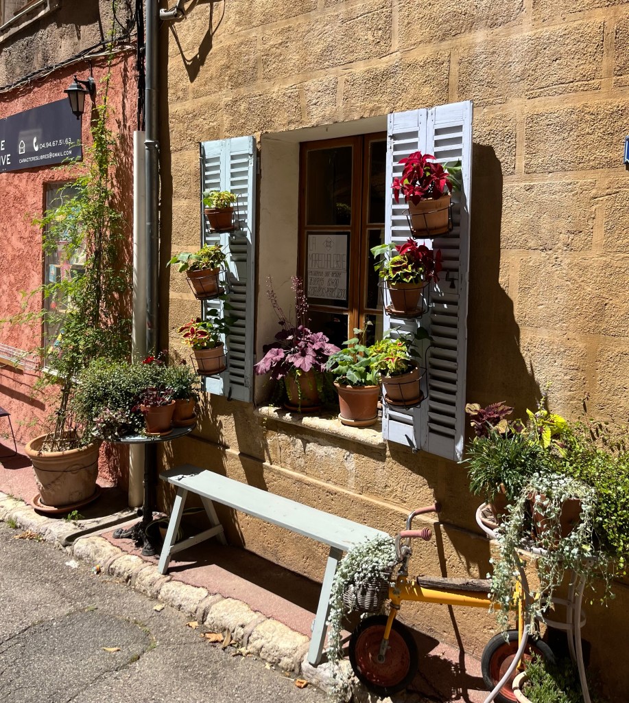 Nu har vi kommit till Aups som är en mysig by. Vi fortsatte vandra runt och förundras över allt vackert. Vi satte oss och tog en kopp förmiddagskaffe.