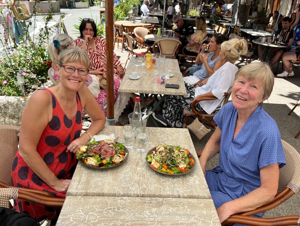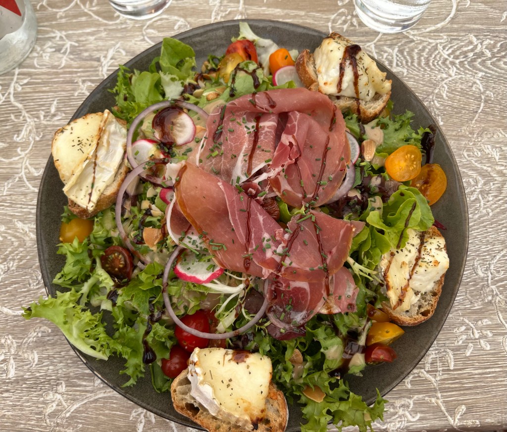 Vi avnjöt en god chèvresallad och vilade oss en stund. Jag känner mig totalt avslappnad i denna härliga miljö.