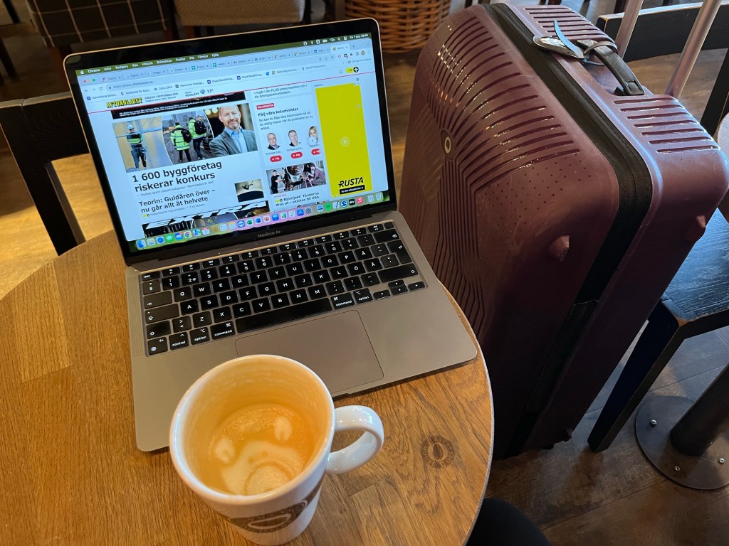 Efter ett digitalt morgonmöte med mitt team på jobbet var det dags att åka till Malmö. Min vän Yvonne som numera bor i Provence är hemma i Sverige och kommer att bo i mitt hus hela tiden jag är borta så hon skjutsade ner mig till stationen. Där satte jag mig och tog en kaffe latte och arbetade medan jag väntade på bussen som skulle ta mig till Nässjö.