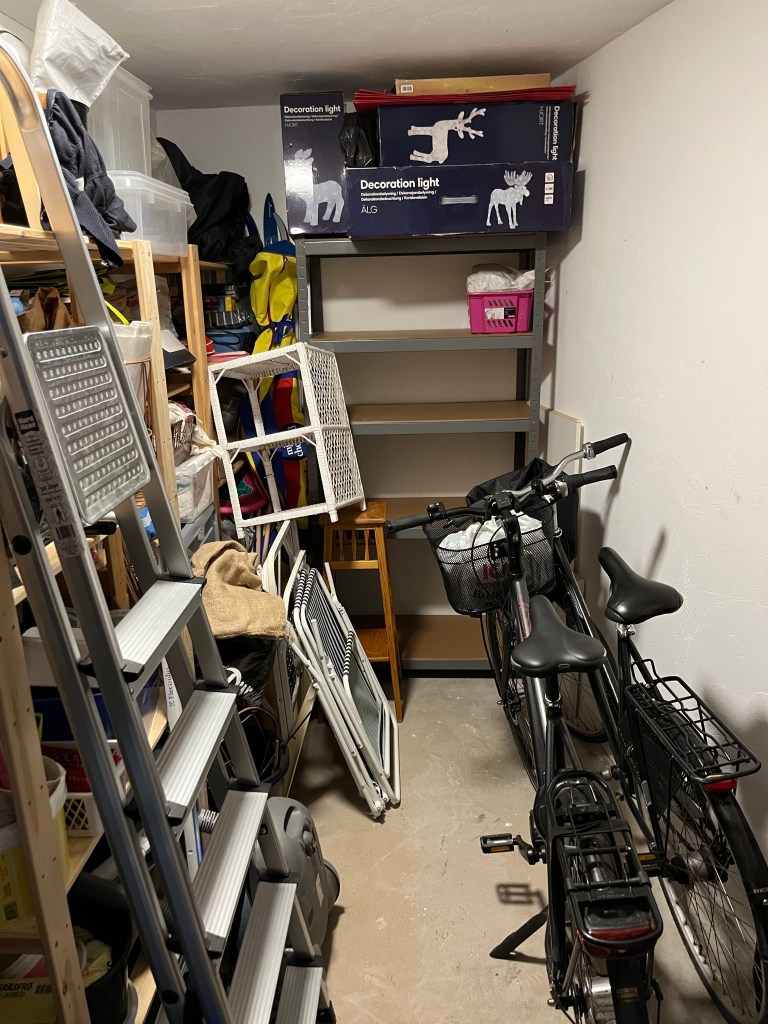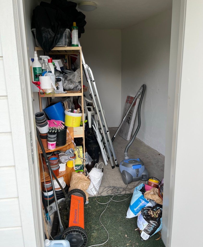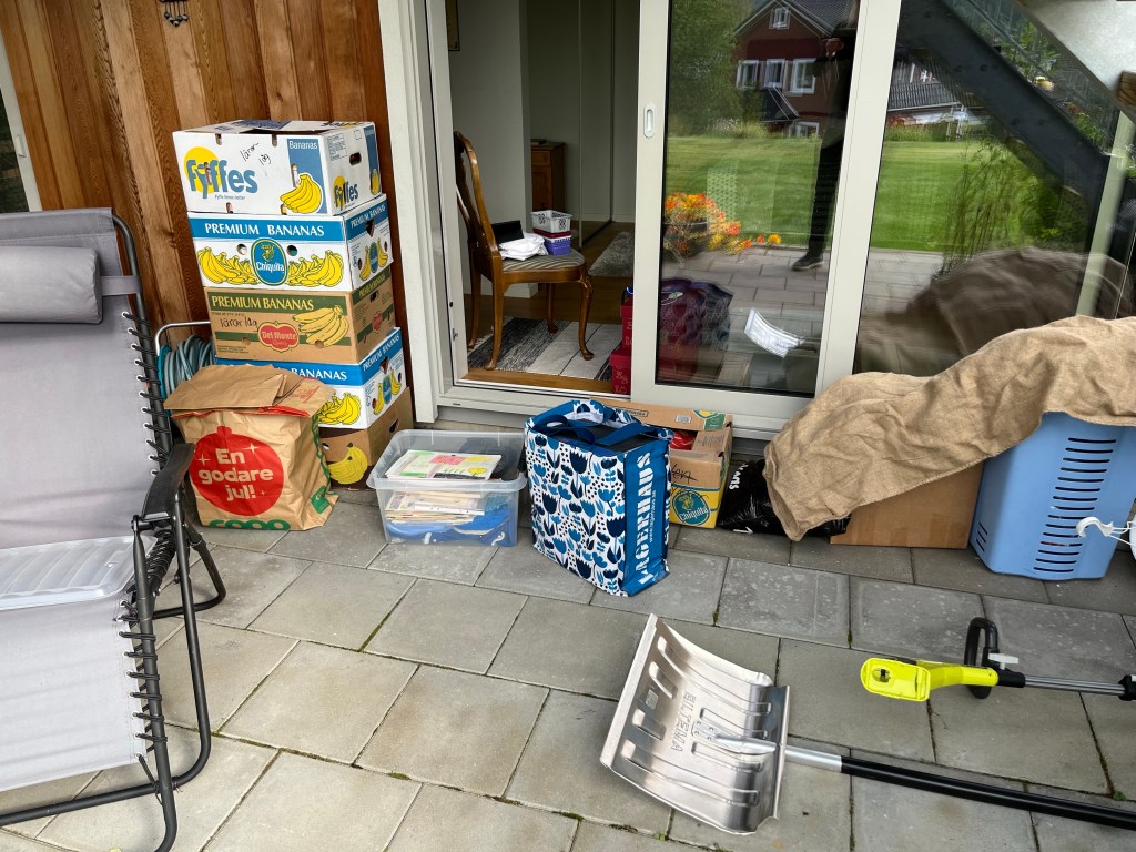 Sen satte jag in alla grejer igen förutom det jag hade rensat ut och slängt. Nu finns det gott om plats när vintern kommer och alla dynor ska in. Så hittade jag en del grejer som jag inte riktigt hade haft koll på. Jag upptäckte att jag har två sekatörer. Jag blev så inspirerad att jag gick ut och började klippa avenbokshäcken som jag delar med grannen. Det är min uppgift att klippa häcken och jag fortsätter en kväll till veckan och gör det klart.