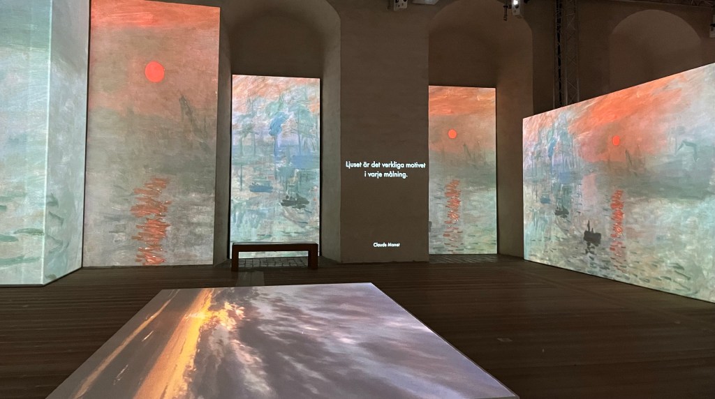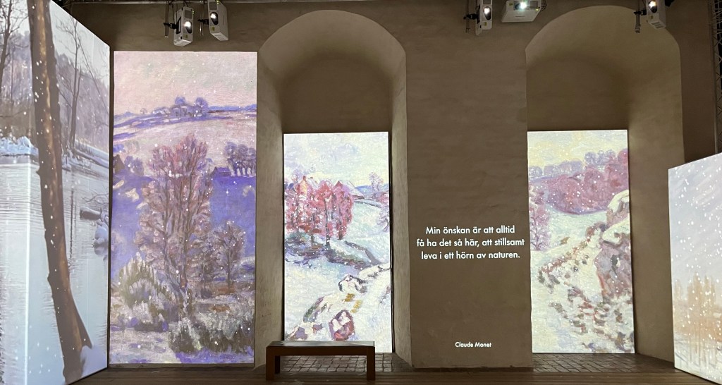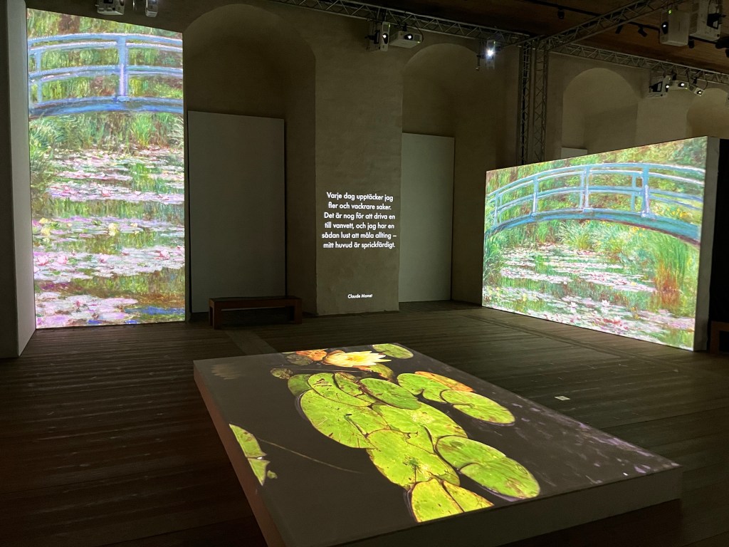 Det var mysigt att vakna upp hos min kära moster Solveig och äta frukost i hennes mysiga hem. Jag tog sen en promenad till slottet för att besöka utställningen Monet & Friends Alive. Det är en ljuvlig utställning som handlar om Claude Monet och en del av de andra impressionisterna. Det var en kombination av målningar, citat och musik samt intressant fakta.
