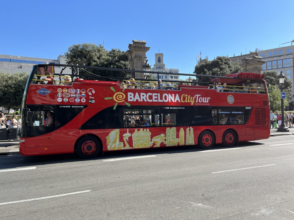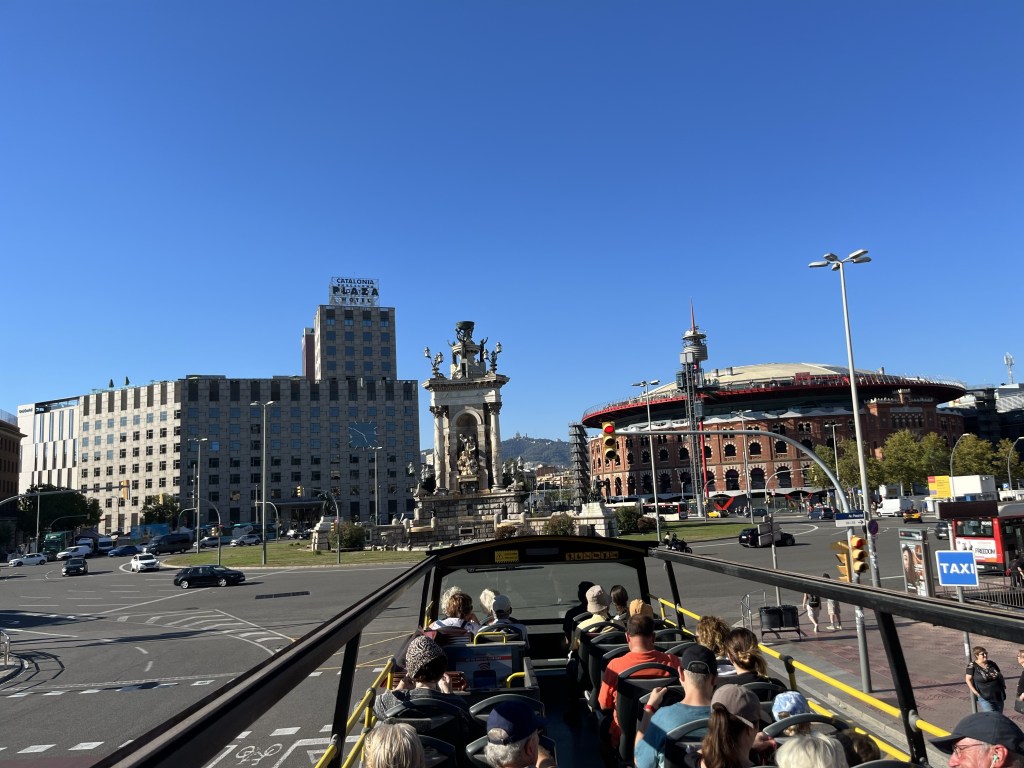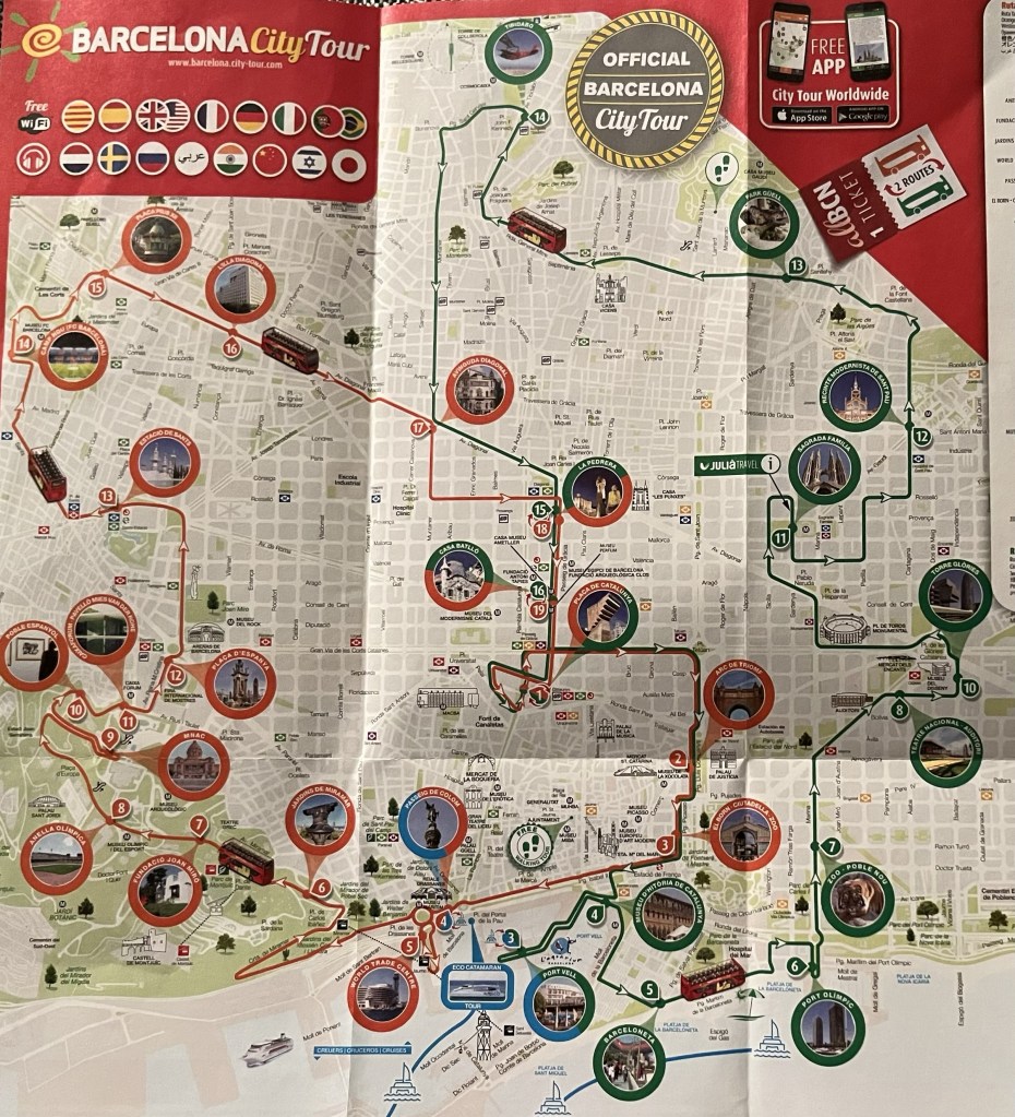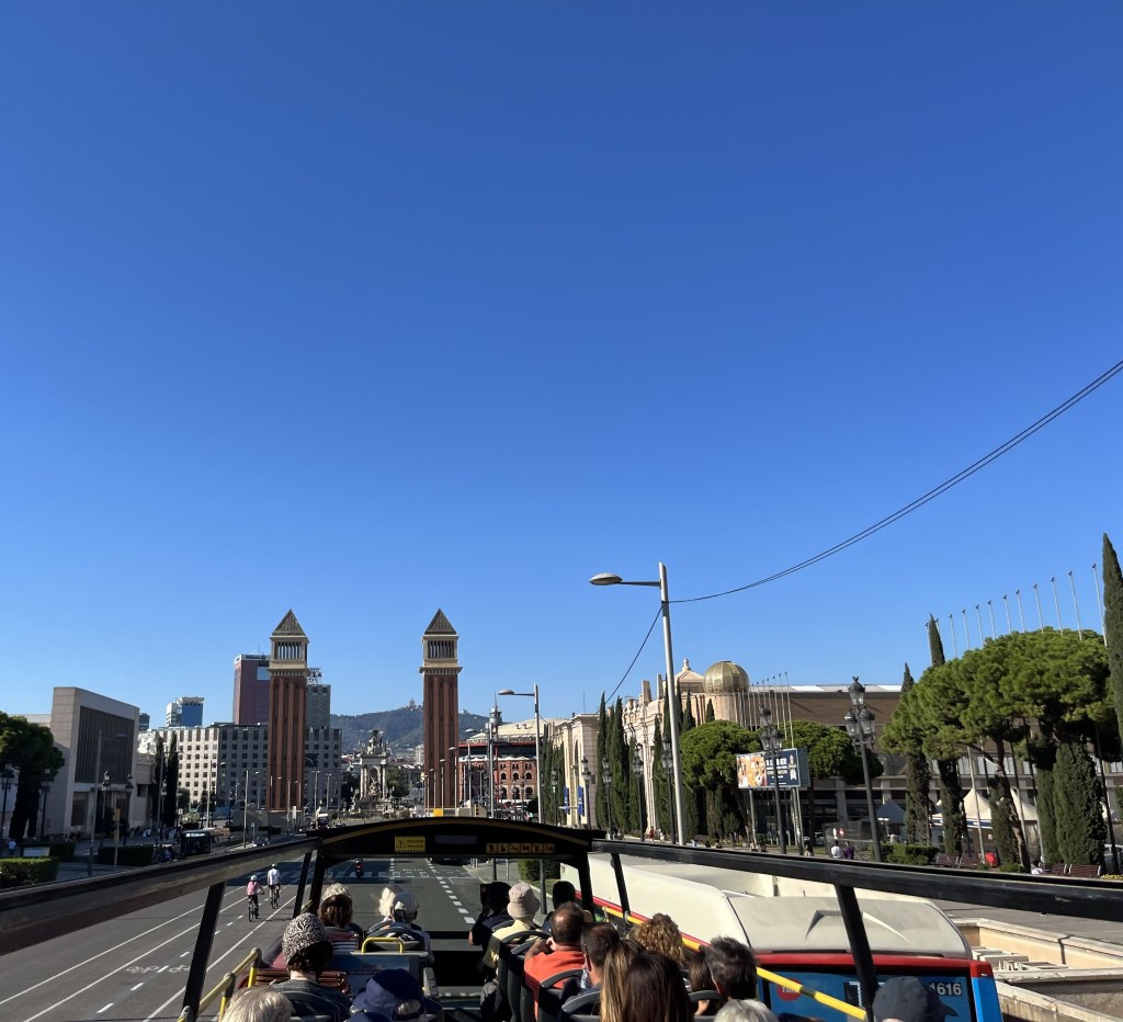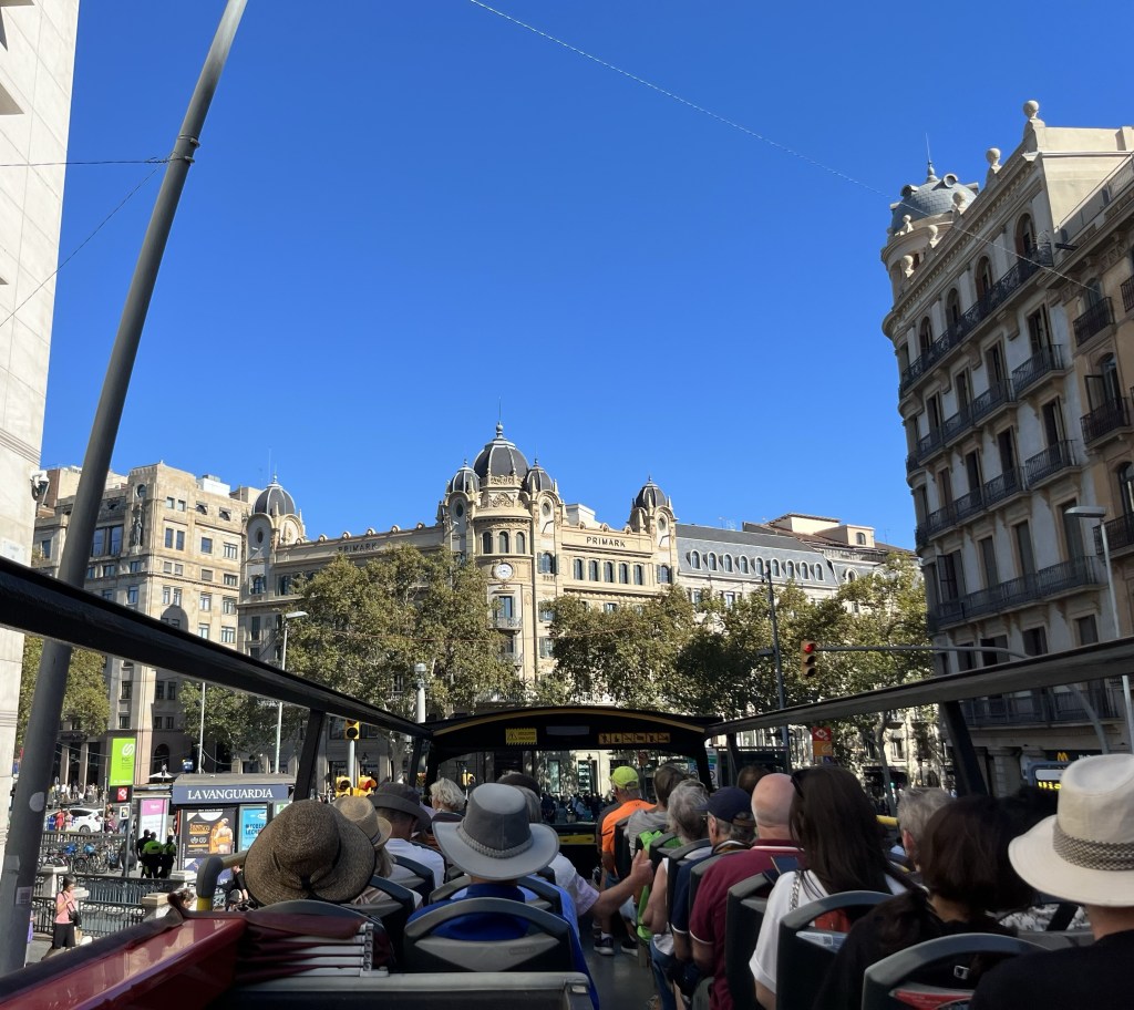 Idag har Pamela och jag haft en helt underbar dag. Vi köpte biljetter till hop on hop off-bussarna och har åkt buss i 4,5 timme i vackra Barcelona (2,5 timmar på den gröna turen och 2 timmar på den röda turen). Vi började med den gröna turen. Vi hoppade på mitt i city.