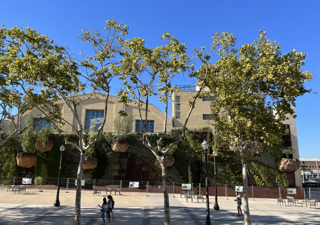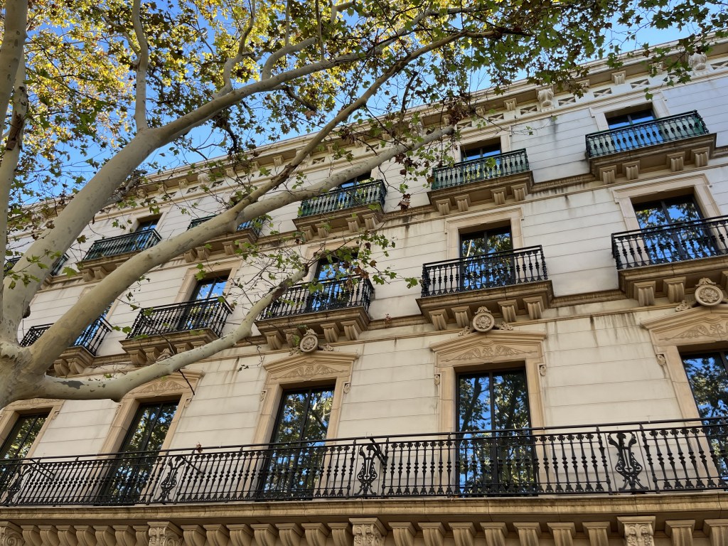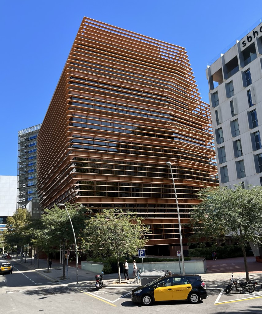 Här ser vi en byggnad som tillhör banken La Caixa, en icke-vinstdrivande bankstiftelse baserad i Katalonien.