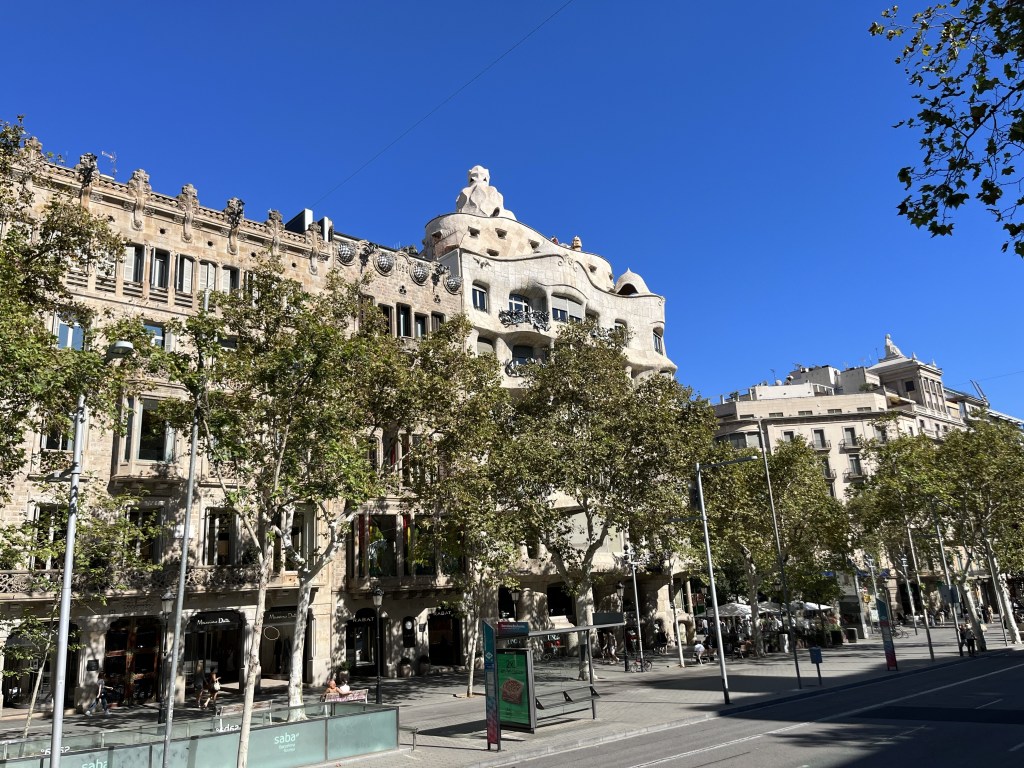 På hop on hop off-bussarna är det meningen att man ska kunna göra många stopp under dagens lopp men detta var det enda stopp vi gjorde. Vi ville hinna se så mycket som möjligt av Barcelona. Vi hoppade på bussen igen vid Park Güell och fortsatte vår färd.