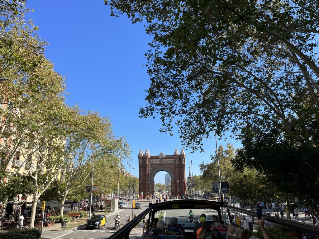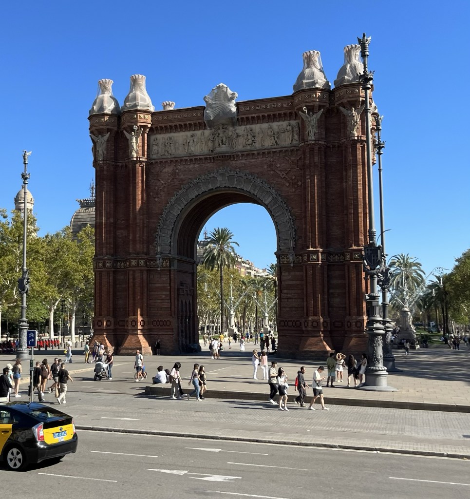 Nu närmar vi oss Triumfbågen som är en minnesbåge. Den byggdes av arkitekten Josep Vilaseca i Casanovas som huvudporten för världsutställningen i Barcelona 1888. Den är byggd utav färgglatt tegel.