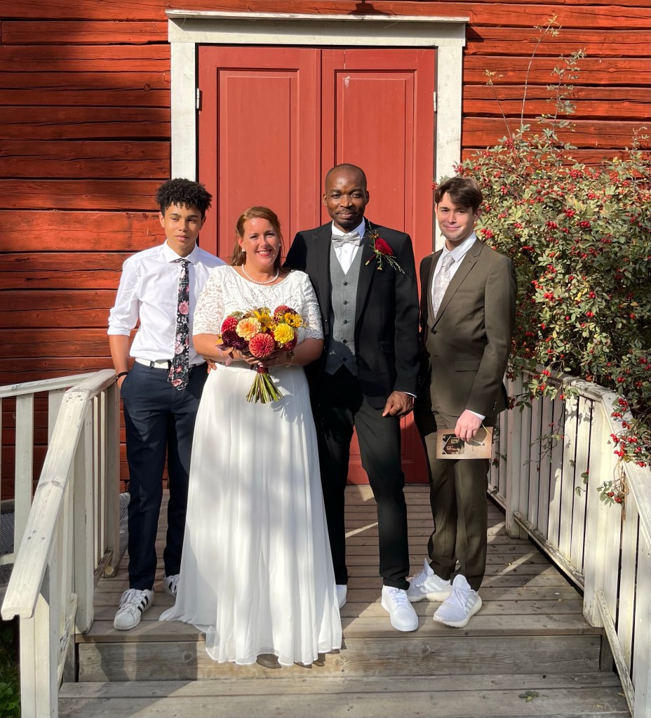 Nedan till vänster är brudparet omgivna av min bror och svägerska och på bilden till höger är Marias två söner med.