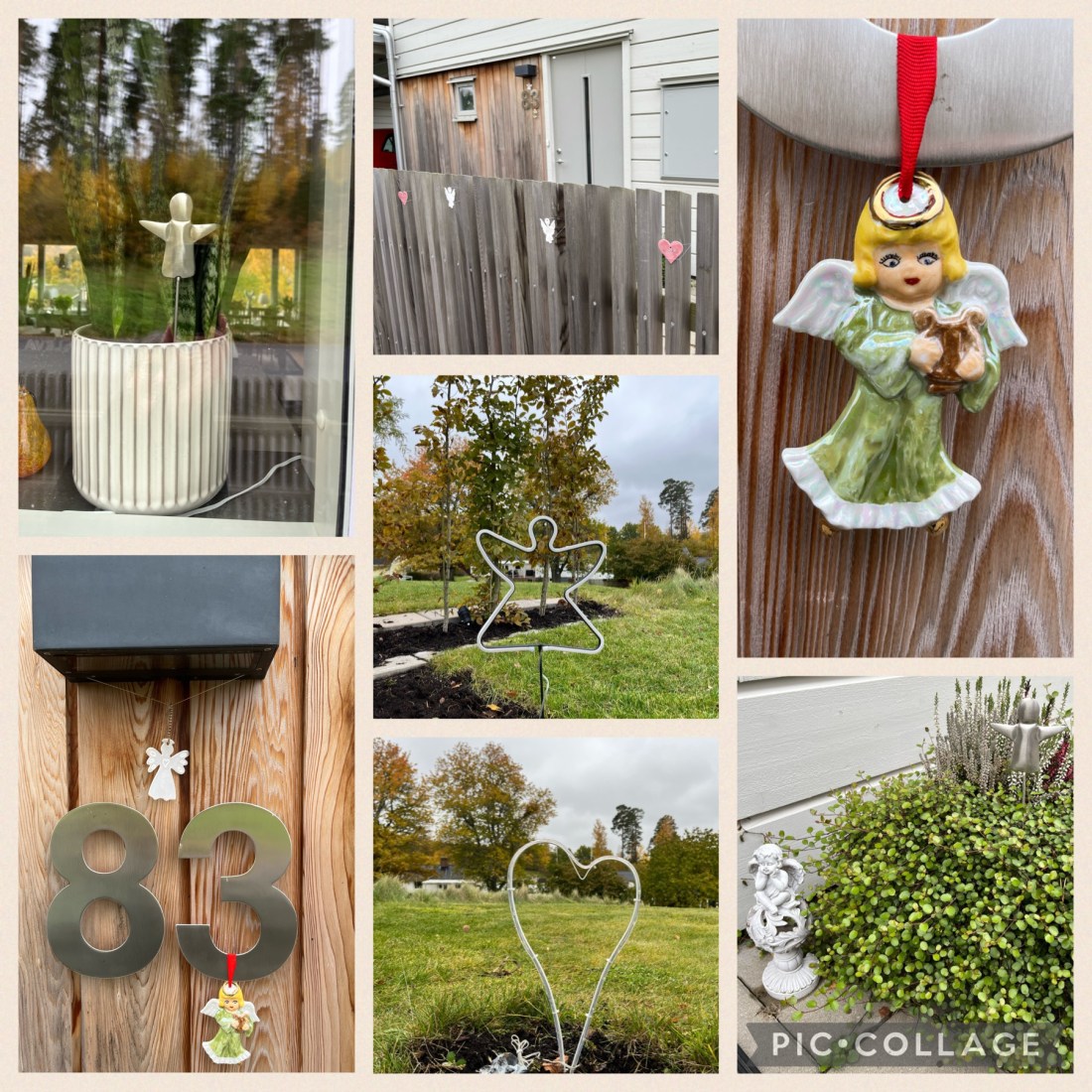 Jag vill gärna bjuda barnen på godis men jag gör det hellre andra dagar när de inte kommer utklädda till dödsväsen i form av spöken, häxor, zombies etc. Nu får de möta änglar här när de försöker kika in och se om det lyser hos mig. Fniss!