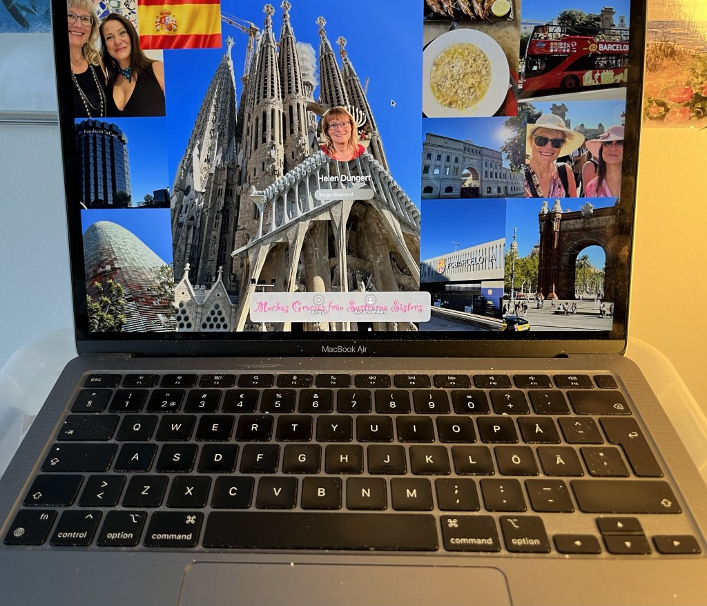Då är jag tillbaka till vardagen och arbetar för fullt. Jag fick detta fina collage från Pamela på förmiddagen och blev så glad. Vilka underbara dagar vi hade i Barcelona! Jag är så uppfylld av allt roligt och glad över den nyvunna vänskapen med Pamela. Jag har lagt collaget som bakgrundsbild på datorn. Det är bra att boosta sig med roliga minnen.