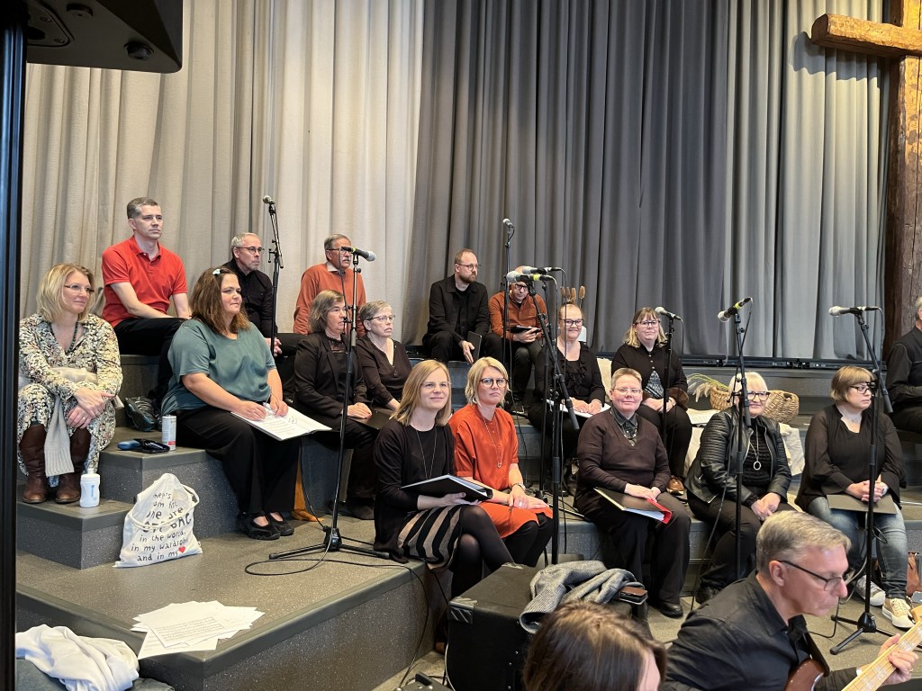 Sen sju veckor tillbaka har vi övat inför kvällens konsert då vi sjungit Elvis Presley-låtar tillsammans med fantastiske sångaren Mikael Järlestrand. Vid pianot fanns Ola Hedén och på estraden fanns Pingstkyrkans orkester som spelade vackert och pampigt i vanlig ordning.