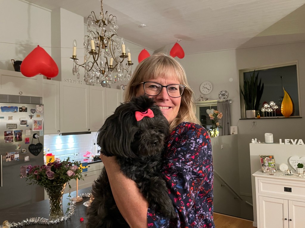 Helgen har börjat. Bror Hans och svägerska Anitha, Marias pojkar KC och Hampus har anlänt. Lilla hunden Wira är också med. Hon är så fin med röd rosett. De dök upp efter kl 21 ikväll och nu har vi ätit lite och pratat. Dags att sova. Trevligt med familjehelg.