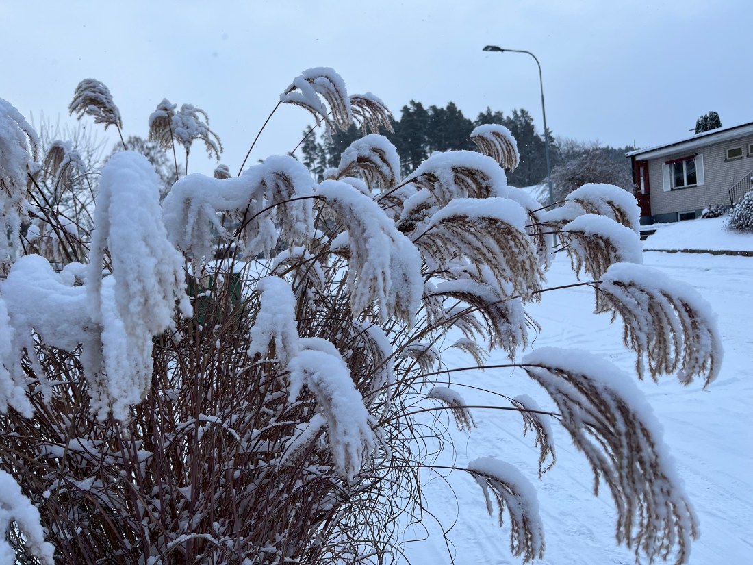 Jag fascineras av årstidernas skiftningar och stannade till vid detta vackra snöbeklädda prydnadsgräs. Så vackert! Det finns alltid något att förundras över.