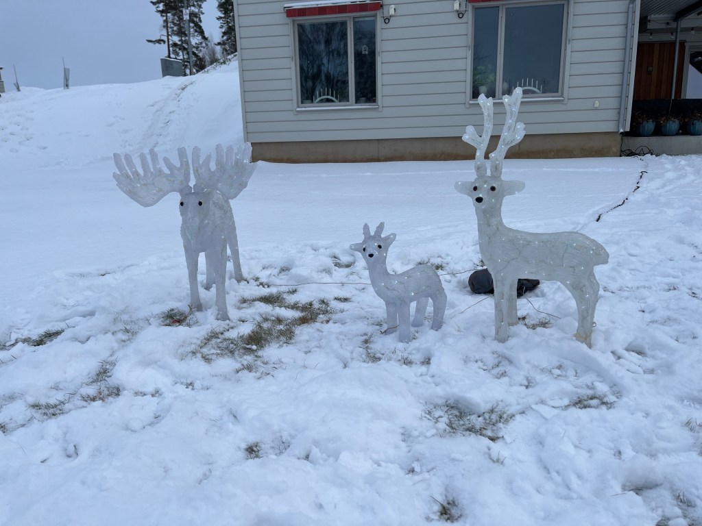 Jag tog fram mina adventsdjur: en älg, en hjort och en kalv. De är så söta och på kvällen lyser de så vackert i trädgården. Titta på den lilla kalven! Han är så go, helt underbar helt enkelt.