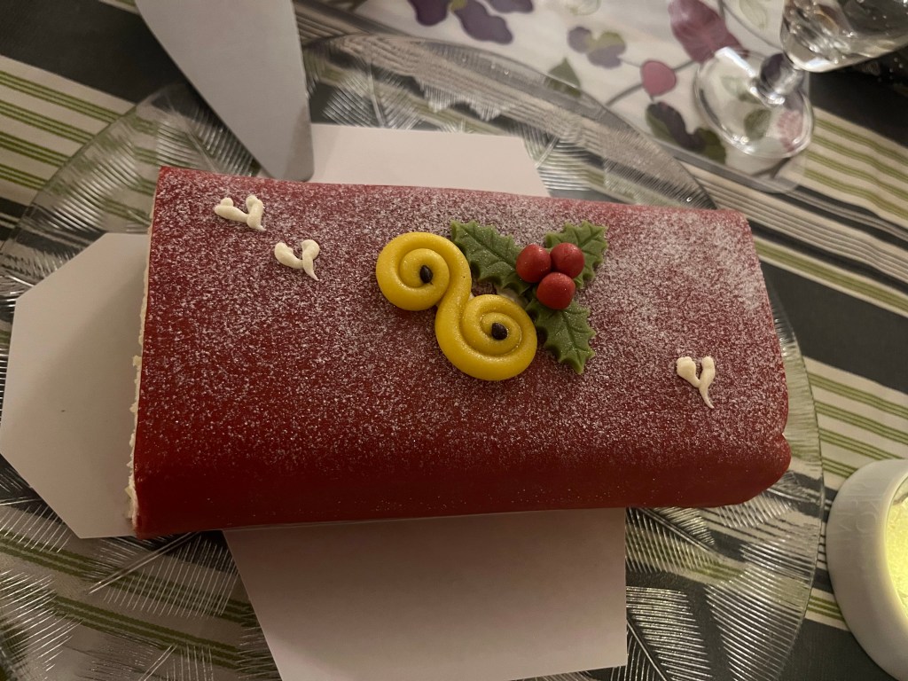 Hon dukade upp ett ljuvligt fikabord och denna julstubbe gick inte av för hackor. Mums, så gott!