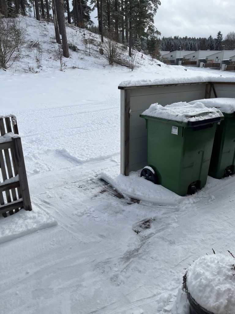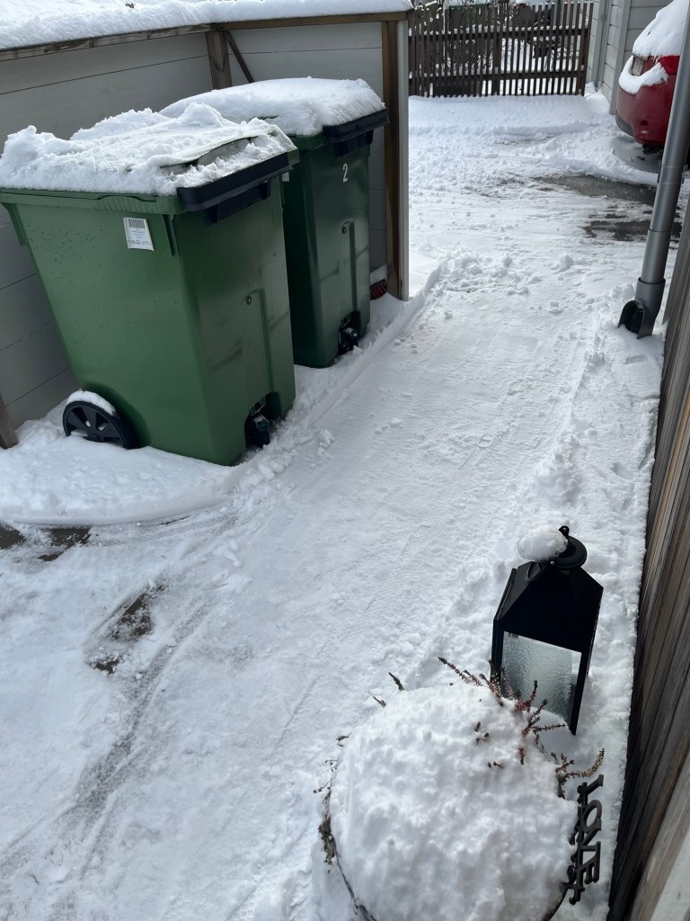 Det har varit underkylt regn sen i söndags. Igår kväll när jag öppnade ytterdörren var det trögt. Jag insåg att det hade snöat och sen frusit till men jag kunde öppna dörren i alla fall och gjorde det några gånger extra. Jag kände inte för att gå ut och skotta utan tänkte göra det idag på lunchen.