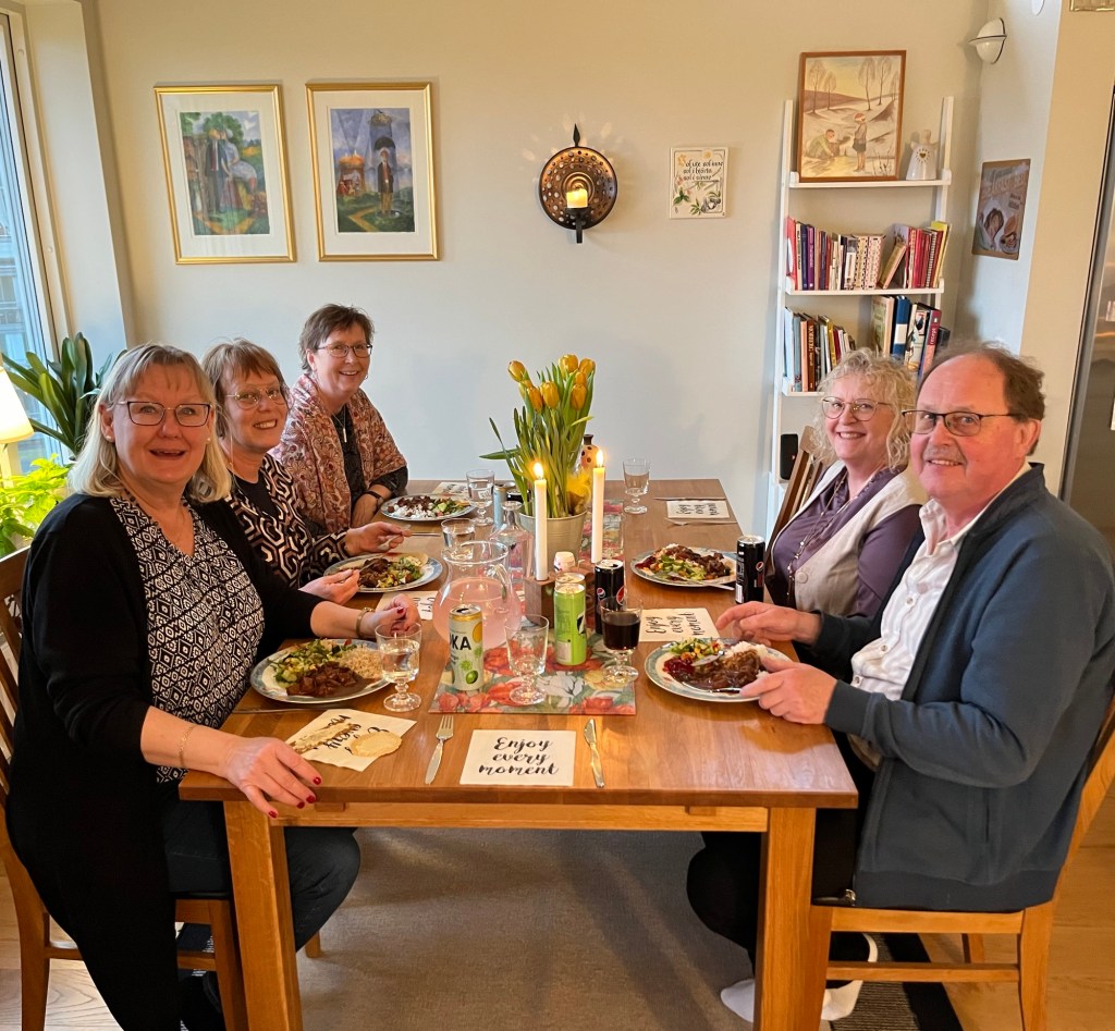 Vi bad sen för var och en. Det är verkligen en styrka att be för varandra och att ta rejält med tid för det. Bön förändrar situationer. Bönen är den största kraften på jorden. Framåt midnatt var det dags för mina gäster att åka hemåt. Om drygt en månad ses vi igen. Min kära vän Bodil ska sova över här inatt. Så roligt med vänskapsfamiljen. De skänker trygghet och ger mig glädje.