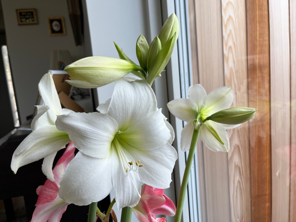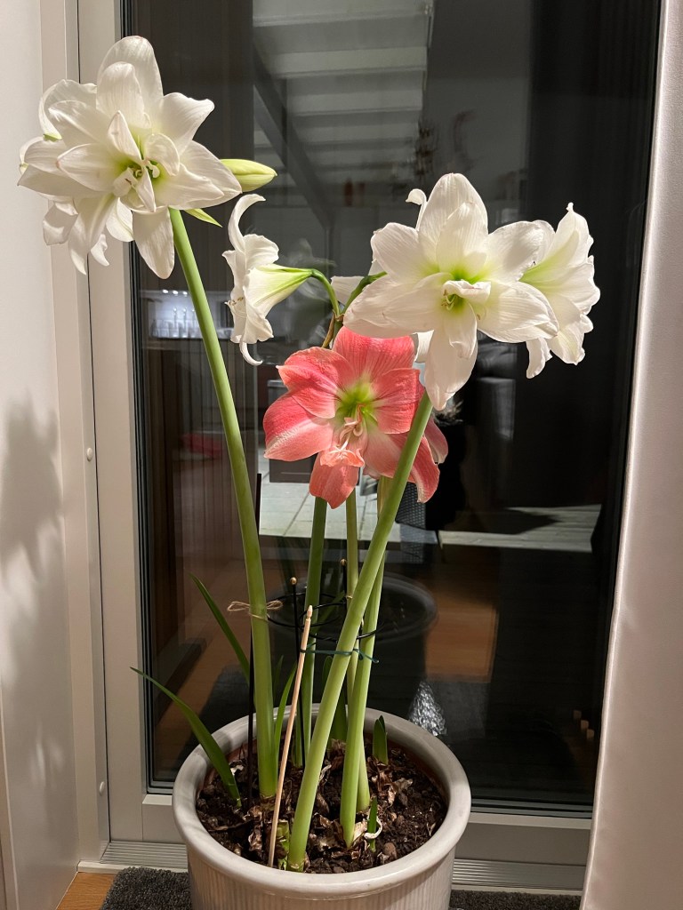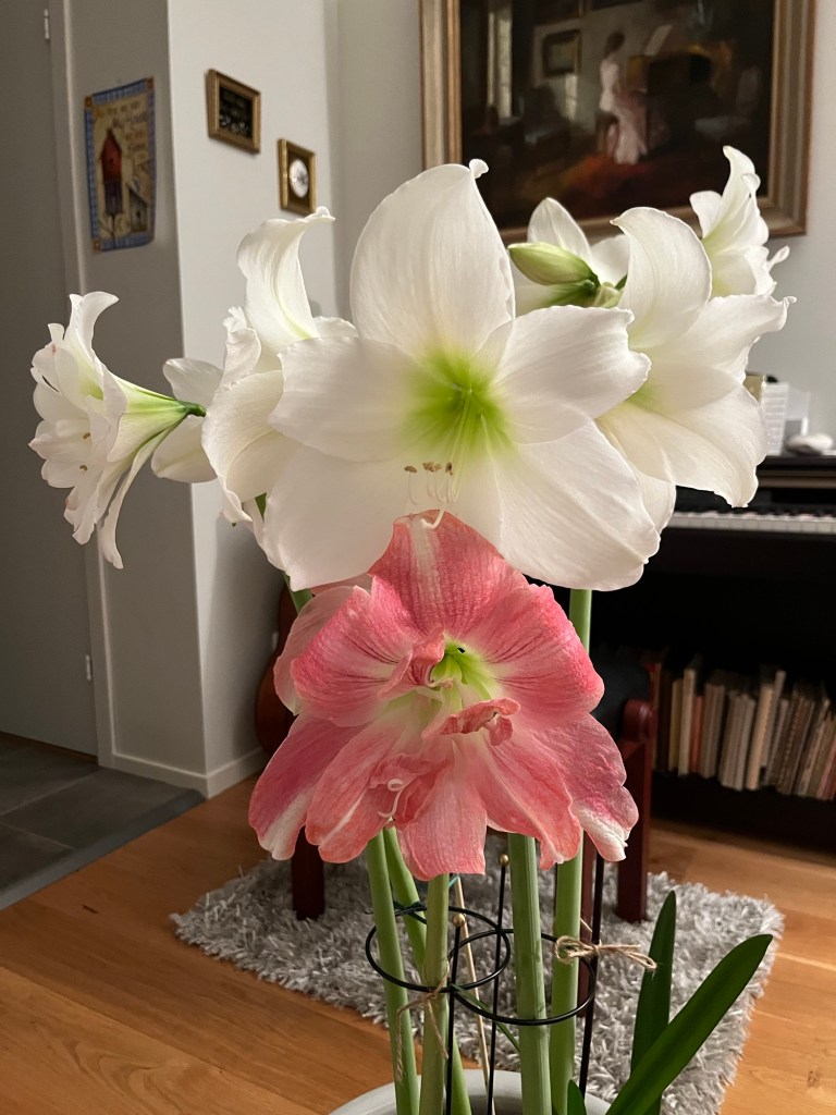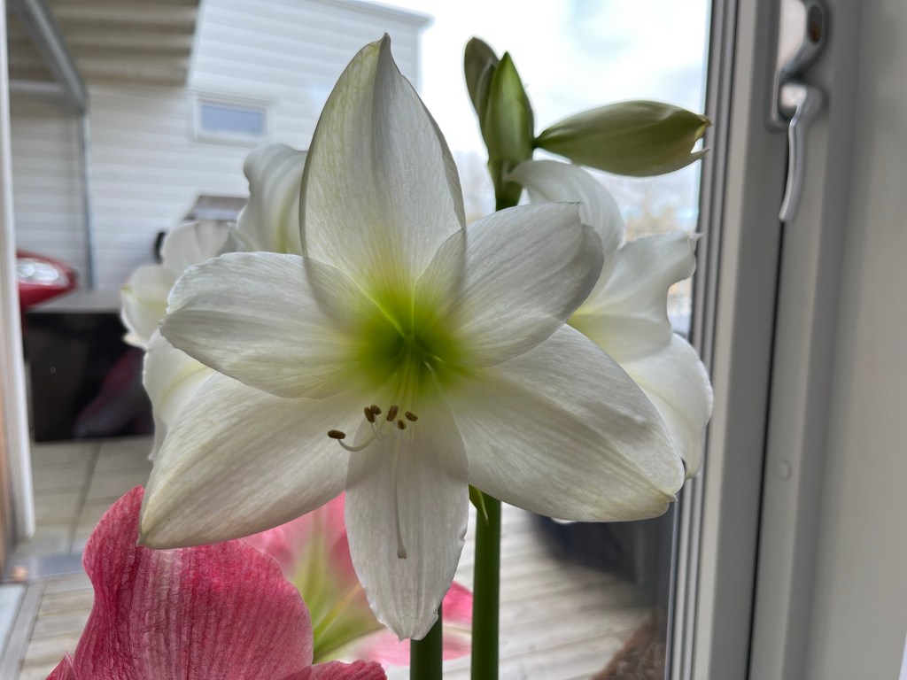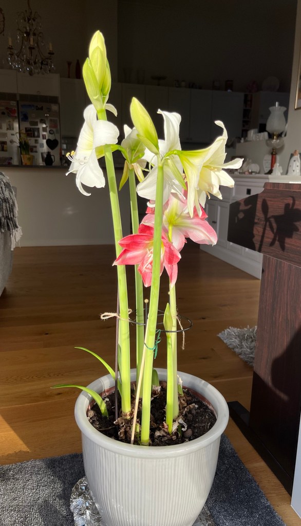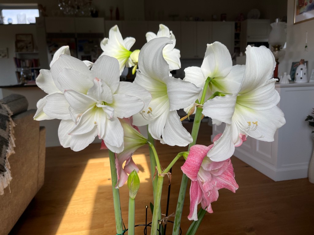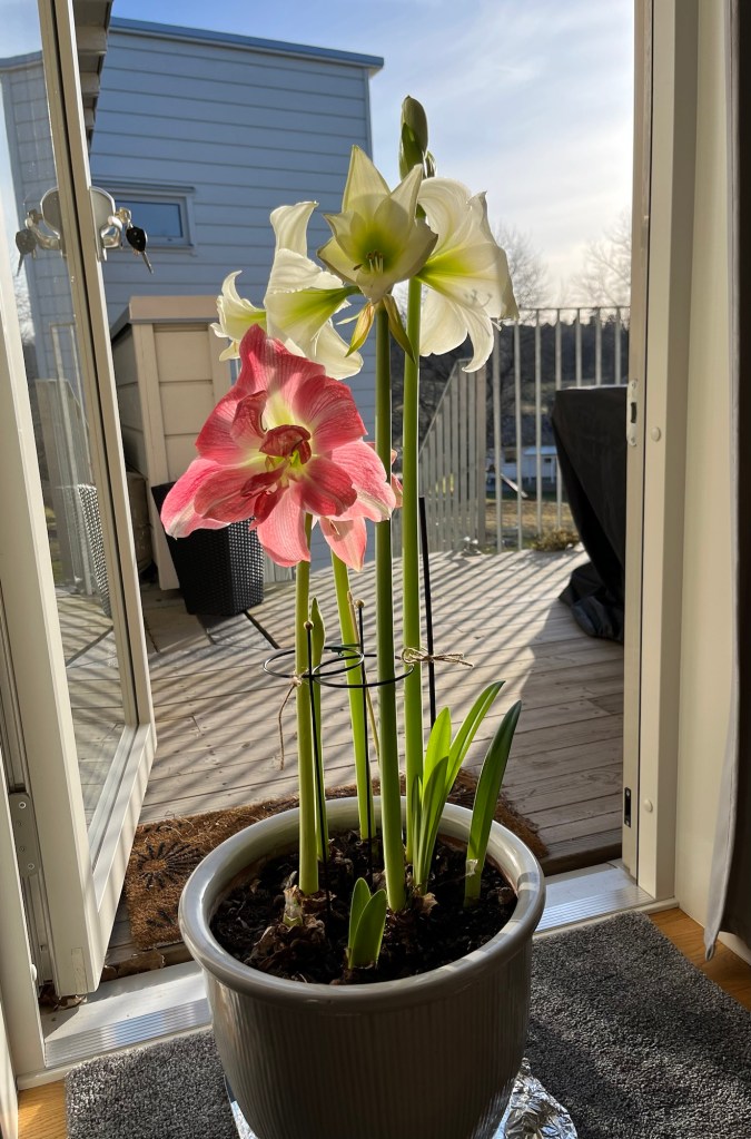Jag är så imponerad av mina amaryllisar. Jag går här och tittar på dem, njuter av dem, fotograferar dem, vänder på krukan och fotograferar igen. De är vackra och jag vet inte om jag någonsin kommer att få vara med om något liknande igen. Jag tycker de är helt underbara. Nu lägger jag in bilder jag tagit de senaste dagarna.