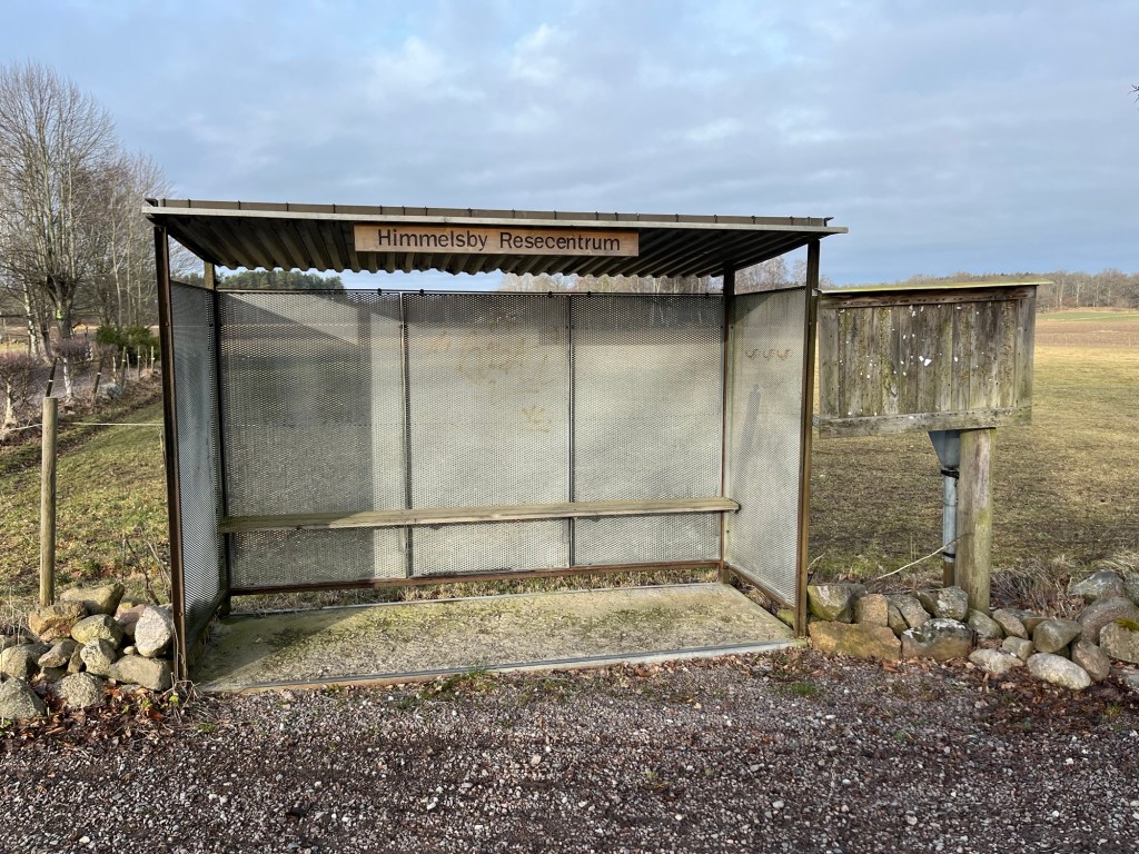 Jag vaknade tidigt idag och tog en morgonpromenad innan frukost. Då passerade jag denna trevliga busskur. Jag visste inte att det fanns ett resecentrum i Himmelsby.