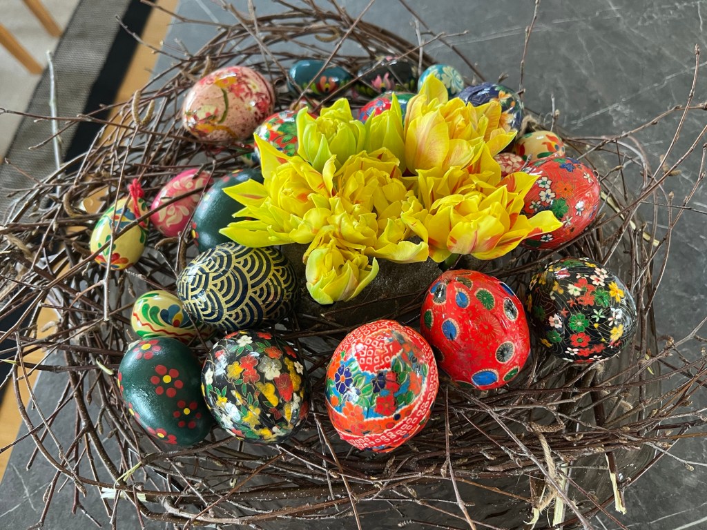 Jag njuter av påsken här hemma. De senaste två åren har jag varit bortrest under påsken så därför känns det extra roligt att vara hemma i år och få ta fram lådan med påskpynt. Det är underbart med denna långhelg. Vi slutade kl 12.00 i torsdags så det blir flera lediga dagar.