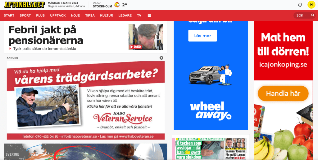På bilden ovan ser vi två av mina lokala annonsörer: Habo Veteranservice och Ica Jönköping. Vi lägger ut annonserna mot läsare i exakt de kommuner som kunderna önskar synas i. Ibland är det gott om lokala annonser samtidigt och det är härligt.