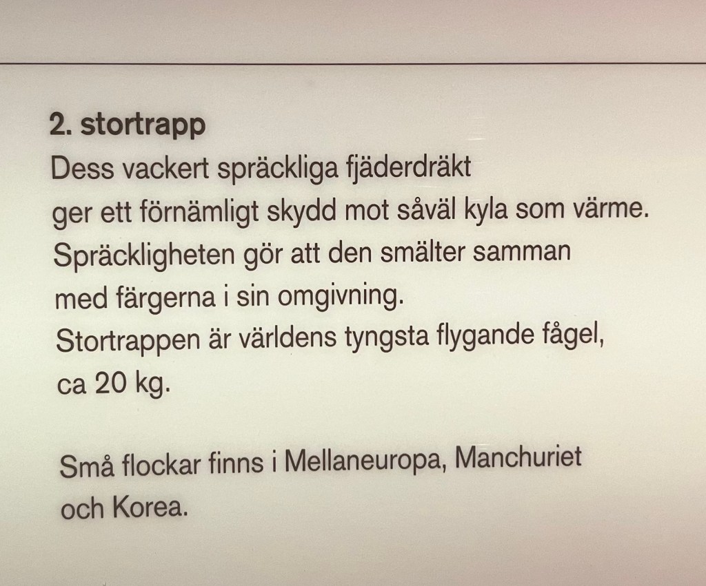 Det fanns många olika avdelningar och jag hade lätt kunnat gå runt på slottet en hel dag men fick begränsa mig lite. Här ser vi en Stortrapp. Den var riktigt maffig. Så vacker fjäderdräkt!