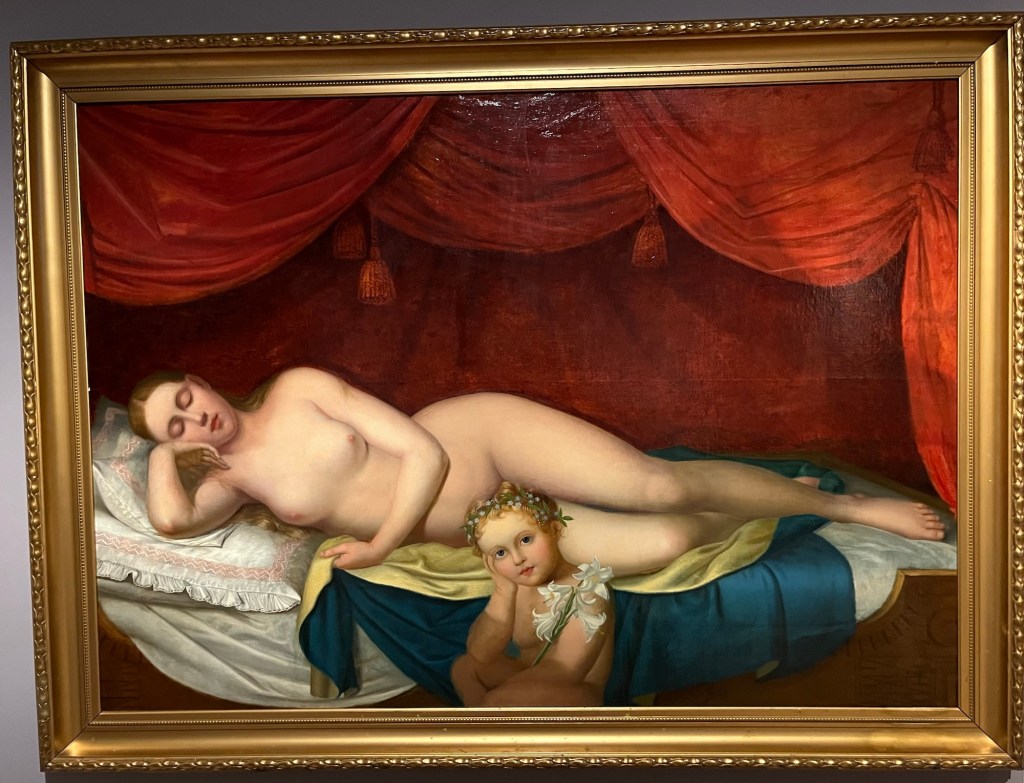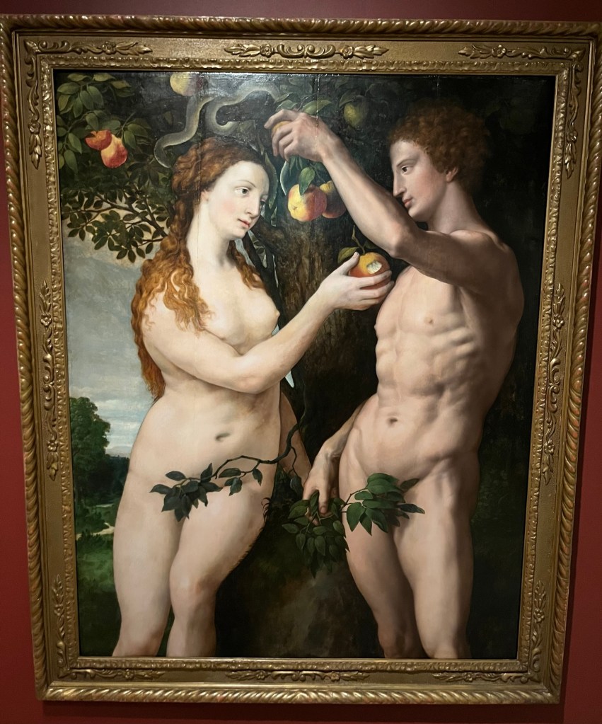 Det var bara jag på den guidade visningen 😃 så det blev riktigt bra. 👍 Bilden nedan föreställer Syndafallet. Oljemålning på ekpannå av den flamländske renässansmålaren Frans Floris. En fråga vi diskuterade: Hade Adam och Eva verkligen en navel? Ingen navelsträng klipptes väl av på dem? 🫢 Vad tror du?