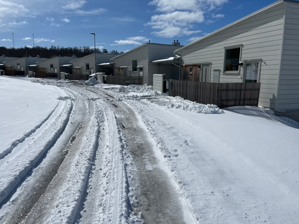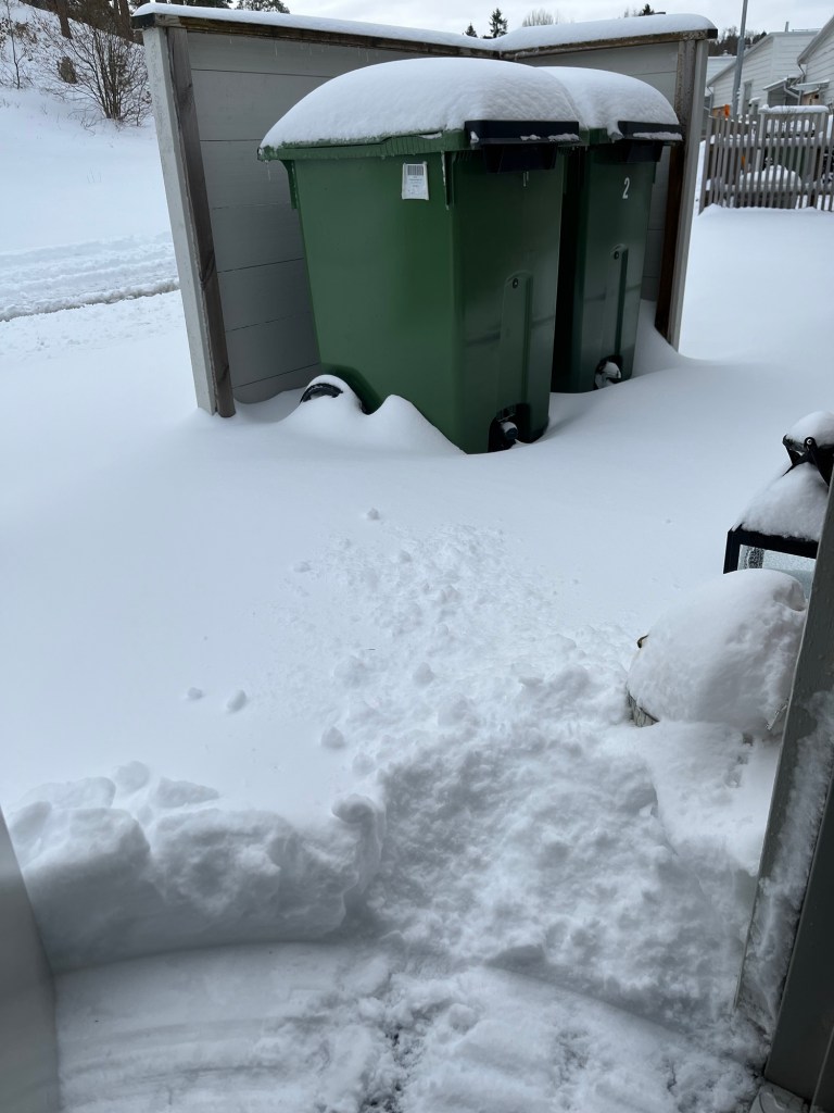 Det är vackert med snötäcket, speciellt när solen skiner. Framåt eftermiddagen blev vägen plogad också. Det gäller att varje dag kunna njuta av det väder som serveras från himlen. Det är bättre än att gnälla.
