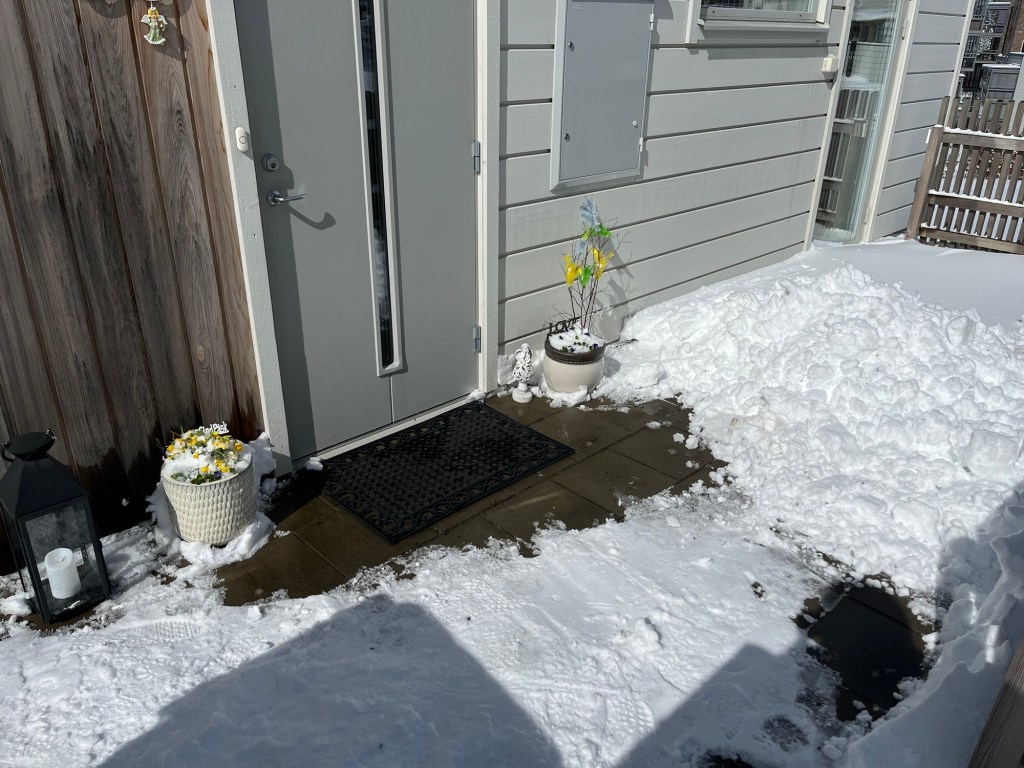 Efter nattens snöande såg det ut så här idag på morgonen. Det är verkligen aprilväder. Jag gick ut och skottade på lunchen. Solen sken och hjälpte till genom att smälta en del snö.
