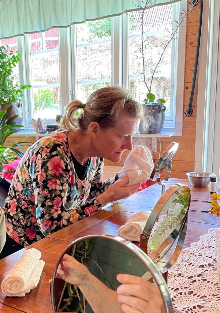 Det är en födelsedagspresent. Det bar iväg till Skogsro Spa där vi fick göra ansiktsbehandling och koppla av med fika i deras vackra trädgårdsoas. Om ni undrar varför jag ser så pigg och fräsch ut framöver kan det bero på Maria Åkerbergs ansiktsfreshener och ansiktsolja.