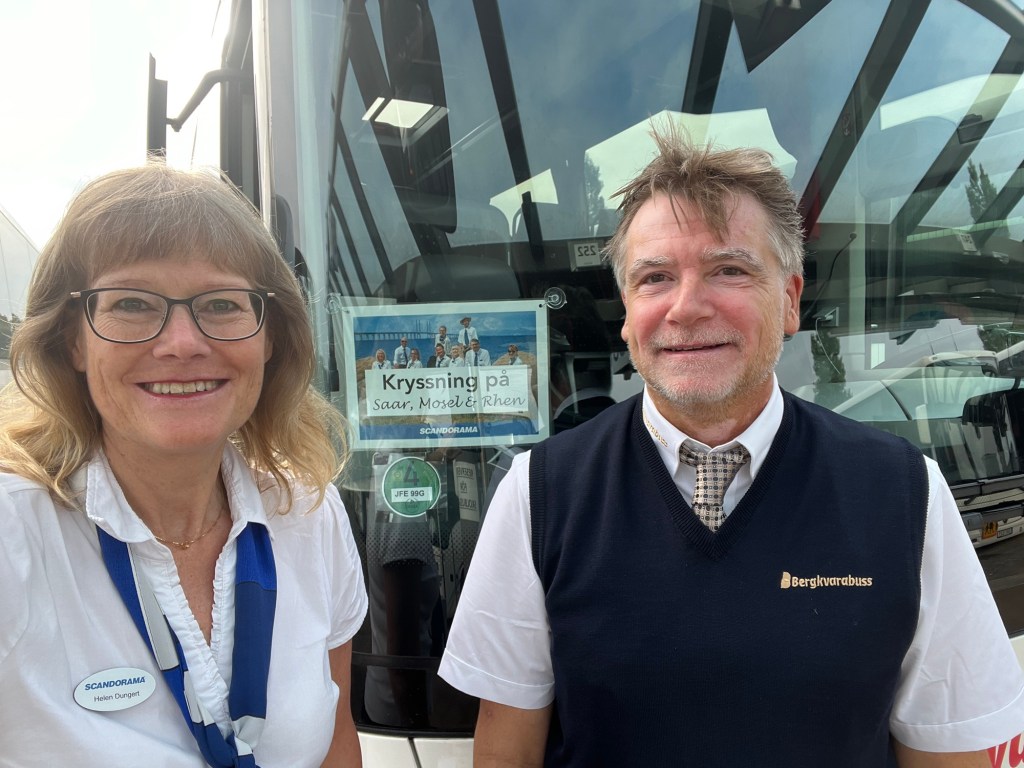 Idag var det frukost kl 06.00. Vi lämnade sen Andernach kl 07.00. Det blev en lång dag i bussen då vi tillryggalade 84 mil. Det var full fart kan jag säga. Vi hade en fikarast på 45 minuter på förmiddagen och 60 minuters lunchpaus under eftermiddagen i Barsbüttel i närheten av Hamburg. Sen var det bara att köra hela tiden. Vi hann med färjan från Rödby till Puttgarden kl 16.55 men det var inga stora marginaler. När vi kom till Malmö körde vi först de resenärer som ska bo på hotell i Malmö city dit och sen rullade vi in på Öresundsterminalen kl 20.15. Jag sover också på hotell i Malmö inatt.